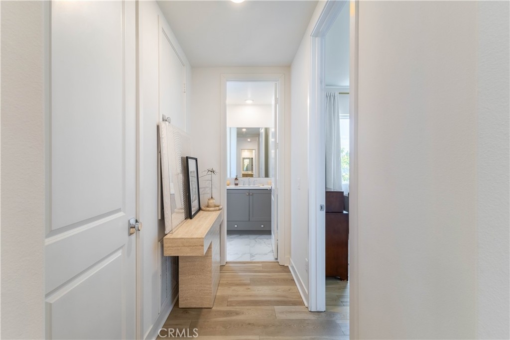 Welcome to this stunning, modern 2-bedroom, 2-bathroom single-level condo, nestled in the highly sought-after Solis Park neighborhood within Great Park, Irvine. Located in a secure, 24-hour gated-access building, this second-floor residence offers a perfect blend of comfort, privacy, and sophisticated style. Step into a light-filled open floorplan designed for contemporary living. The expansive living and dining area seamlessly connects to a large private balcony—ideal for enjoying mountain views or entertaining guests with effortless indoor-outdoor flow. The chef-inspired kitchen and living space create a central hub for relaxation and gathering. Each generously sized bedroom features its own private en-suite bath, providing ultimate comfort and convenience. The luxurious primary suite boasts a spacious walk-in closet and a spa-like bathroom retreat. Additional highlights include ample linen storage, a versatile living area perfect for a home office or play zone, and in-unit washer and dryer. This home also includes a 2-car tandem garage, additional private storage, and access to resort-style amenities. Enjoy exclusive access to all nine Great Park neighborhoods, award-winning Irvine Unified schools (all within walking distance), and nearby world-class shopping, dining, and entertainment—including Woodbury Town Center, FivePoint Amphitheatre, Irvine Spectrum, and John Wayne Airport. Don’t miss the opportunity to live in one of Irvine’s most dynamic and vibrant communities. This beautifully designed condo offers the perfect balance of luxury, location, and lifestyle.
