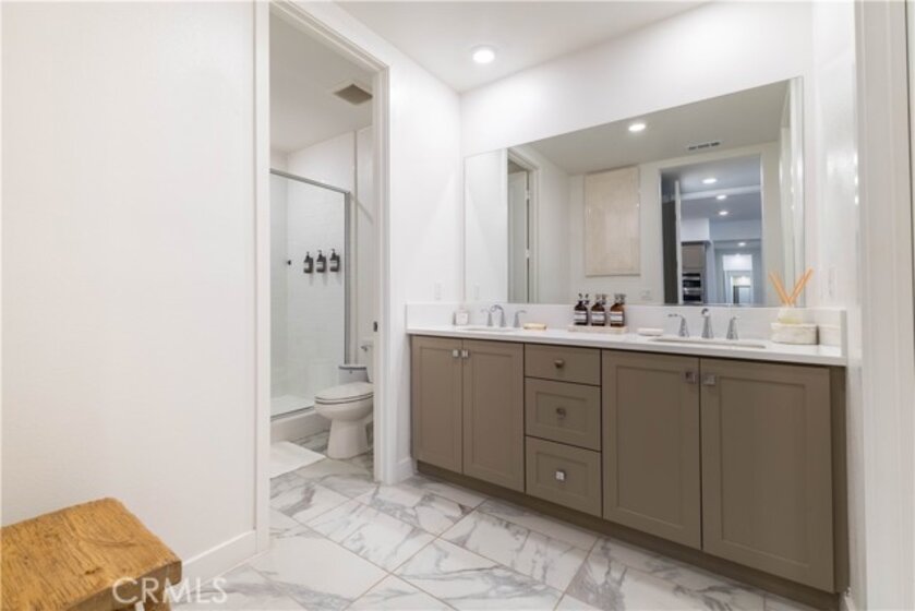 Welcome to this stunning, modern 2-bedroom, 2-bathroom single-level condo, nestled in the highly sought-after Solis Park neighborhood within Great Park, Irvine. Located in a secure, 24-hour gated-access building, this second-floor residence offers a perfect blend of comfort, privacy, and sophisticated style. Step into a light-filled open floorplan designed for contemporary living. The expansive living and dining area seamlessly connects to a large private balcony—ideal for enjoying mountain views or entertaining guests with effortless indoor-outdoor flow. The chef-inspired kitchen and living space create a central hub for relaxation and gathering. Each generously sized bedroom features its own private en-suite bath, providing ultimate comfort and convenience. The luxurious primary suite boasts a spacious walk-in closet and a spa-like bathroom retreat. Additional highlights include ample linen storage, a versatile living area perfect for a home office or play zone, and in-unit washer and dryer. This home also includes a 2-car tandem garage, additional private storage, and access to resort-style amenities. Enjoy exclusive access to all nine Great Park neighborhoods, award-winning Irvine Unified schools (all within walking distance), and nearby world-class shopping, dining, and entertainment—including Woodbury Town Center, FivePoint Amphitheatre, Irvine Spectrum, and John Wayne Airport. Don’t miss the opportunity to live in one of Irvine’s most dynamic and vibrant communities. This beautifully designed condo offers the perfect balance of luxury, location, and lifestyle.