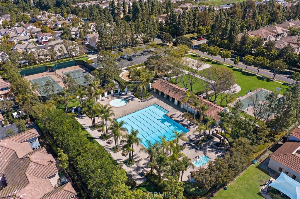 Location, Location !! *** Highly prized location with no homes behind !! *** Immaculate condition, three full bedrooms plus large main level den with newer, plush carpet and travertine marble flooring, crown molding, enhanced baseboards, designer paint, LED lighting, Nest thermostat, integrated speaker system on both levels, multiple ceiling fans, professional den built-in, and more !! *** Chef's kitchen comes complete with premium Bosch stainless steel appliance package with convention oven and five-burner built-in cooktop, Caesarstone countertops, full backsplash and sit-up peninsula island, upgraded cabinetry with soft-close hinges and drawers *** Opulent primary suite includes solid stone bathroom countertops, separate shower and soaking tub and professional closet organizer *** Backyard is an oasis of privacy and tranquility with maintenance-free faux turf, upgraded vinyl fencing and gate, and two organic avocado trees!! ***Enjoy the resort style amenities with four private pools, tennis, volleyball, basketball, tot lots and walk to the upscale Oak Creek Promenade for shopping and dining!