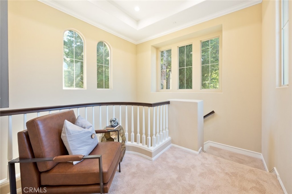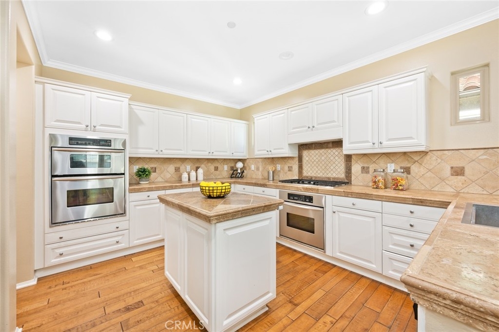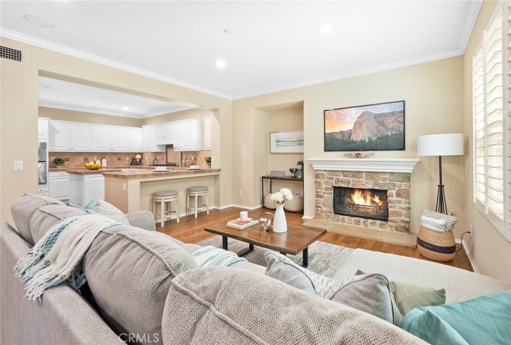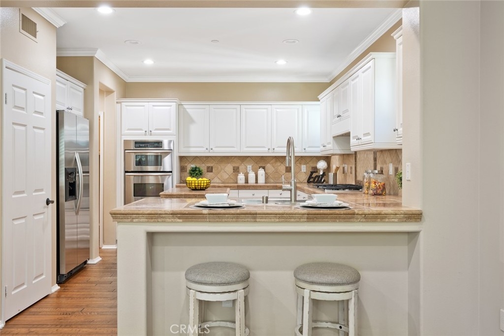 Introducing 15 Shade Tree, a three-bedroom, three-and-a-half-bathroom home tucked away in the quiet gated community of Canyon's Edge in Turtle Ridge. This house was completed with a rare builder option offering dual master suites, one on the main floor and another on the second level. With more than 2,400 square feet of living space and a true two-car garage, this home combines style with practicality. Inside, you'll find a welcoming design with a touch of Tuscany influence. The hardwood floors, crown molding, and recessed lighting create an inviting atmosphere. The kitchen is a delight, complete with a five-burner gas range, high-end appliances, travertine countertops, and a central island that flows seamlessly into a spacious great room, perfect for get-togethers. Step outside through the French doors, and you'll discover a peaceful backyard and patio area. It's an ideal spot for outdoor dining and relaxation, featuring a custom-built barbecue, an Italian water fountain, and fruit trees like lemons, oranges, and an elegant olive tree. Storage won't be a concern with the epoxy-floored two-car garage, which comes with built-in rafters for all your storage needs. Practicality meets comfort with invisible screens adding to the home's convenience. For families, this home falls within the well-regarded school district of Vista Verde Elementary/Middle School and University High School. Additionally, you'll be conveniently situated near beaches, Fashion Island, dining options, hiking trails, and more. 15 Shade Tree offers a comfortable living experience with its dual master suites, thoughtful design, and desirable location in the Canyon's Edge community. This home is a unique opportunity that combines luxury with everyday convenience.