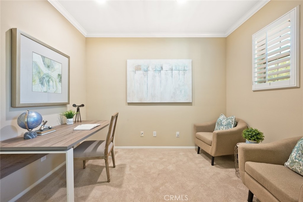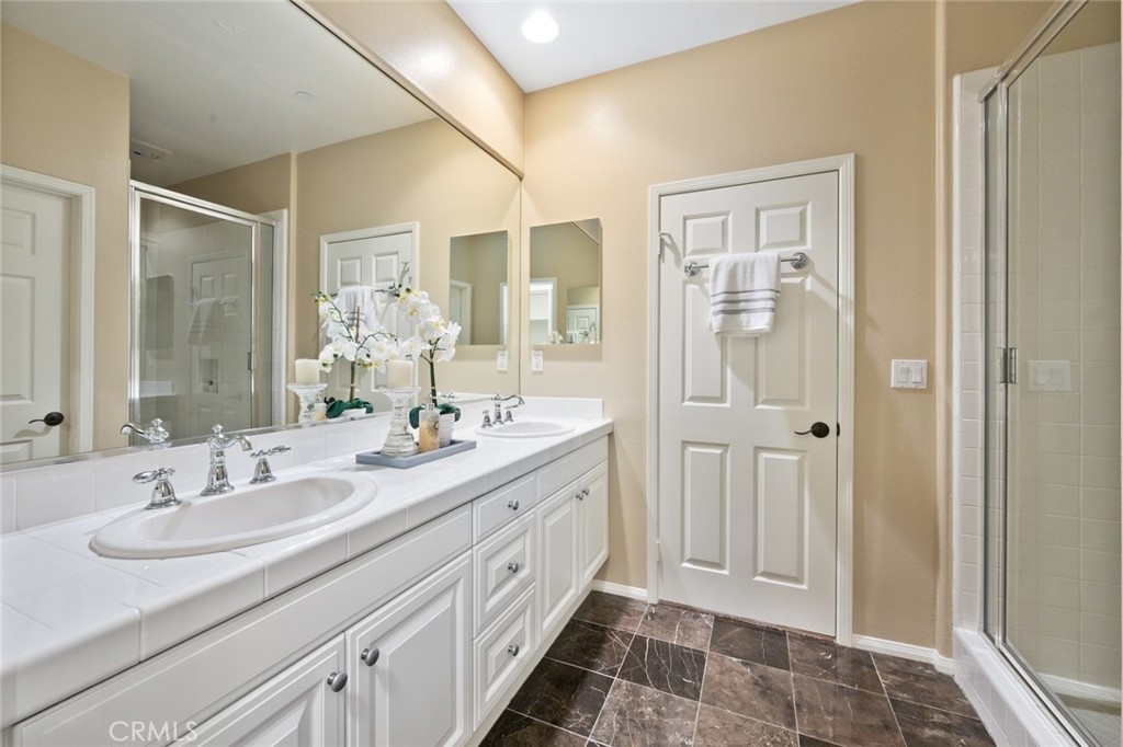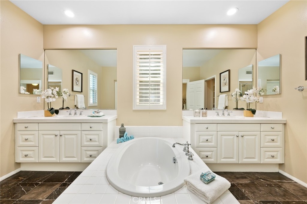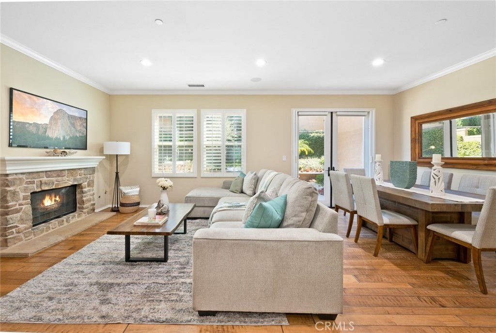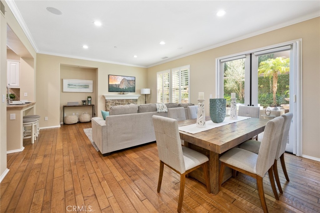 Introducing 15 Shade Tree, a three-bedroom, three-and-a-half-bathroom home tucked away in the quiet gated community of Canyon's Edge in Turtle Ridge. This house was completed with a rare builder option offering dual master suites, one on the main floor and another on the second level. With more than 2,400 square feet of living space and a true two-car garage, this home combines style with practicality. Inside, you'll find a welcoming design with a touch of Tuscany influence. The hardwood floors, crown molding, and recessed lighting create an inviting atmosphere. The kitchen is a delight, complete with a five-burner gas range, high-end appliances, travertine countertops, and a central island that flows seamlessly into a spacious great room, perfect for get-togethers. Step outside through the French doors, and you'll discover a peaceful backyard and patio area. It's an ideal spot for outdoor dining and relaxation, featuring a custom-built barbecue, an Italian water fountain, and fruit trees like lemons, oranges, and an elegant olive tree. Storage won't be a concern with the epoxy-floored two-car garage, which comes with built-in rafters for all your storage needs. Practicality meets comfort with invisible screens adding to the home's convenience. For families, this home falls within the well-regarded school district of Vista Verde Elementary/Middle School and University High School. Additionally, you'll be conveniently situated near beaches, Fashion Island, dining options, hiking trails, and more. 15 Shade Tree offers a comfortable living experience with its dual master suites, thoughtful design, and desirable location in the Canyon's Edge community. This home is a unique opportunity that combines luxury with everyday convenience.