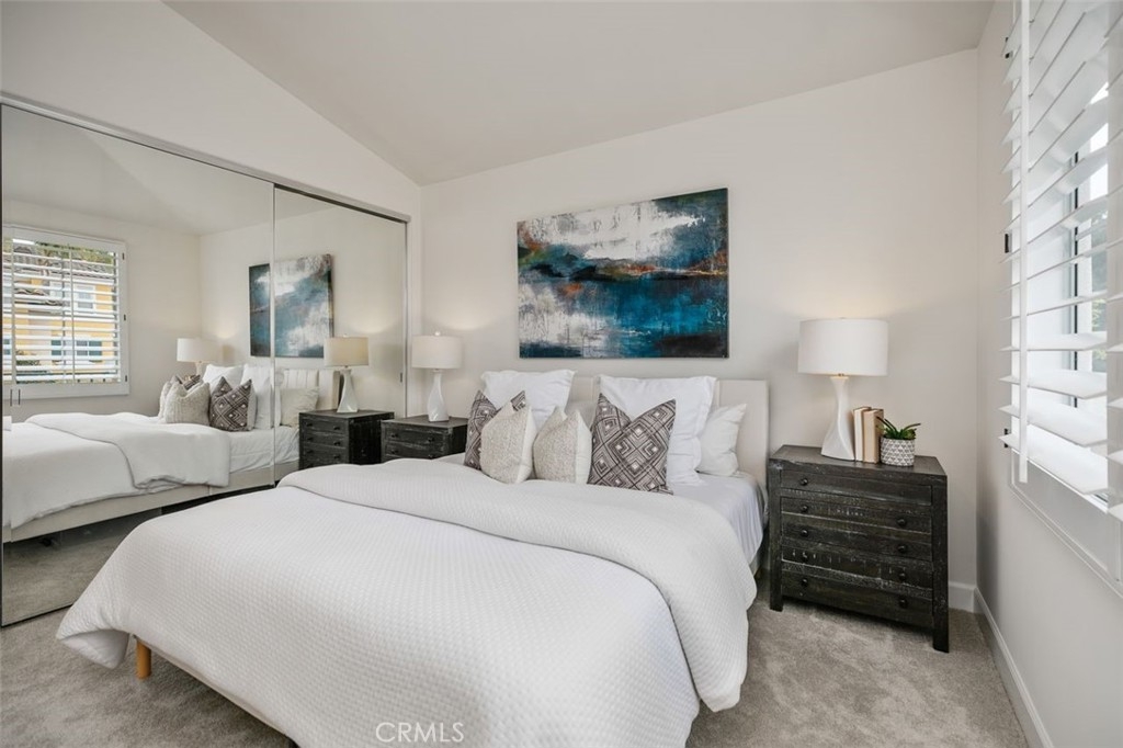 Charming Upstairs Corner Unit in Desirable Westpark Community! Welcome to this beautifully updated Aventura model condo, offering 2 bedrooms and 2 bathrooms in the highly sought-after Westpark neighborhood of Irvine. This light-filled home is tucked away in a quiet, interior location of the community, with no neighbors above or below—just garages—providing a peaceful and private setting. Recent upgrades include fresh interior paint, new carpeted floors, and luxe plantation shutters. The spacious living room features soaring cathedral ceilings and a cozy fireplace, creating a warm and inviting atmosphere. Enjoy the convenience of an attached 2-car garage with direct access and an in-unit laundry space. Step outside to the expansive balcony—perfect for relaxing or hosting a BBQ. The Westpark community offers exceptional amenities, including a pool, spa, tennis court, and BBQ area. Located in the heart of Irvine, you'll have easy access to the I-405 freeway, as well as close proximity to Crossroads Shopping Plaza, Tustin District, John Wayne Airport, and a variety of restaurants. Highly rated schools like Plaza Vista Elementary/Middle, Woodbridge High School, and UCI are also nearby. Don’t miss out—this charming home in a serene, interior location is a must-see and is sure to impress!