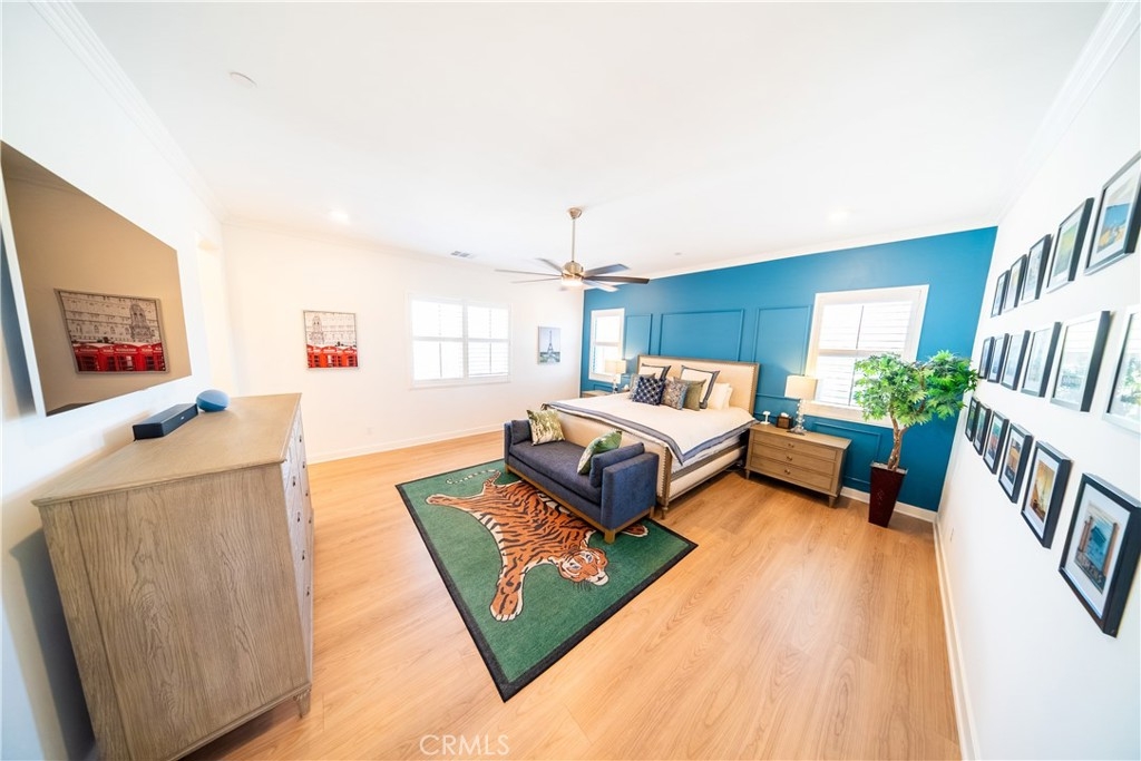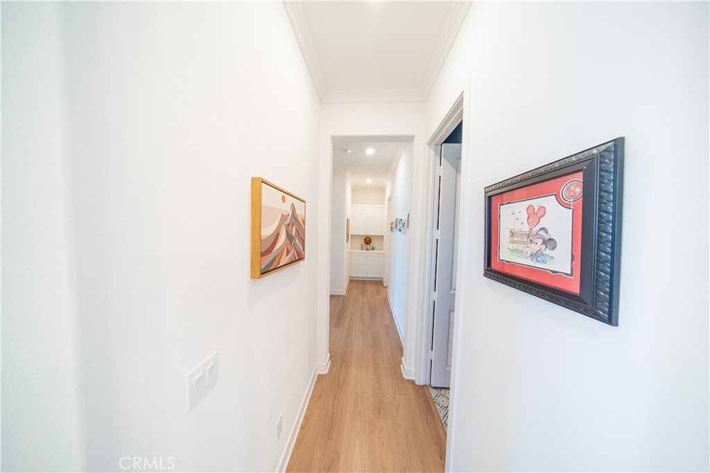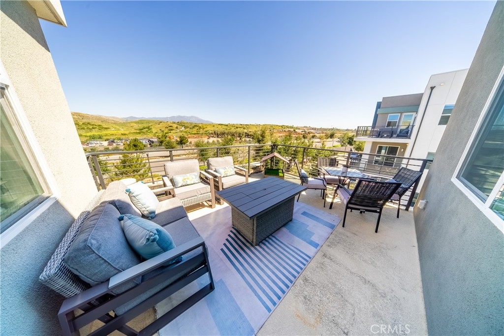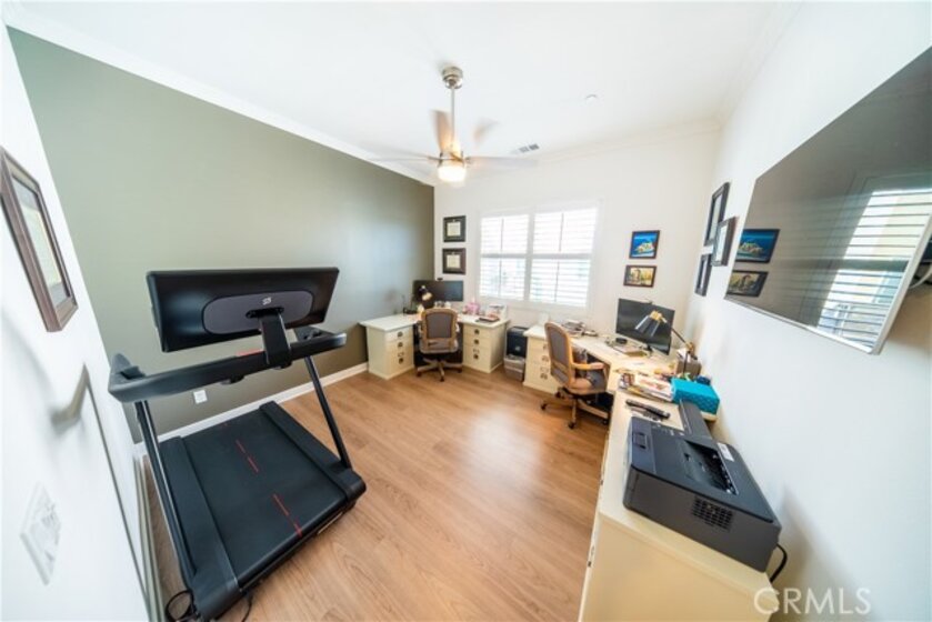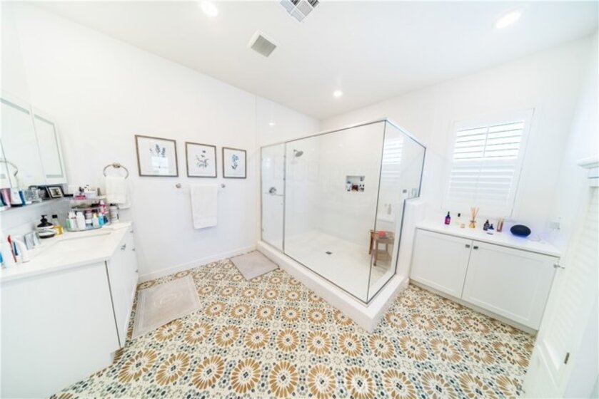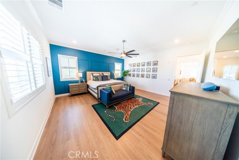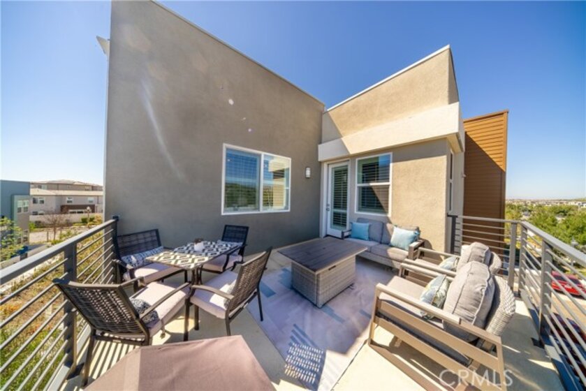 Experience elevated penthouse living in this single-level residence located in the highly sought-after Solis Park community of Great Park Irvine. Spanning approximately 2,585 sq ft, this 4-bedroom, 3.5-bath home offers an open-concept layout, abundant natural light, and scenic hill views.The designer kitchen features quartz countertops, an oversized island, premium stainless steel appliances, and an upgraded backsplash, seamlessly flowing into the main living and dining areas. A private balcony provides a peaceful outdoor setting.The thoughtfully designed floor plan includes a private primary suite, a secondary en-suite bedroom, and two additional bedrooms—each with walk-in closets. Custom closets enhance organization throughout. Notable upgrades include LVP and tile flooring, crown molding and baseboards, upgraded lighting and ceiling fans, white interior shutters, and an extra-large storage closet. Step out onto your private balcony and enjoy uninterrupted views and tranquil moments above it all—your own retreat in the sky. Additional highlights include paid solar panels and a private two-car garage.