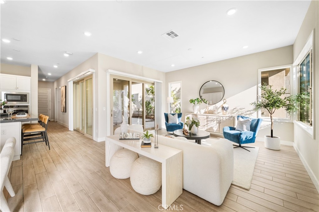 Welcome to this stylish detached home nestled in Irvine’s highly sought-after Great Park neighborhood. Built in 2019, this corner lot, two-story home offers 4 bedrooms, 4 full bathrooms, and 2408 sqft of comfortable living space, thoughtfully designed for modern lifestyles and flexible living needs. The main floor offers a bright, open layout with a full bedroom and bathroom, providing flexibility for guests, extended family, or a private home office. The contemporary kitchen is appointed with quartz countertops, stainless steel appliances, and an oversized island, flowing effortlessly into the dining and living areas. Upstairs, the spacious primary suite serves as a peaceful retreat, highlighted by a walk-in closet and an elegant, spa-like bathroom. Two additional bedrooms upstairs each enjoy access to their own full bathrooms, offering comfort and privacy for family members. A versatile loft provides additional living space, complemented by the convenience of an upstairs laundry room. Additional features include upgraded flooring, recessed lighting throughout, and an attached two-car garage. The detached home with no shared walls offers the privacy of a single-family residence with the ease of condo living. Ideally situated within walking distance to Cadence Park School (K–8) and just moments from the Great Park’s exceptional amenities, including resort-style pools, parks, playgrounds, sports courts, and miles of scenic trails. This is a wonderful opportunity to own a turnkey home in one of Irvine’s most vibrant and desirable communities.