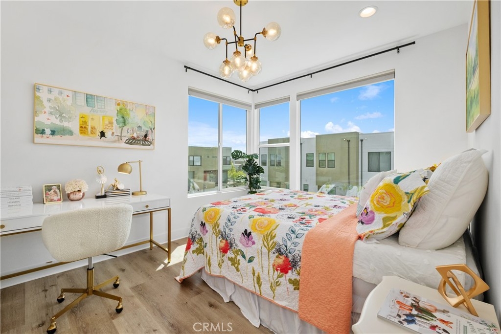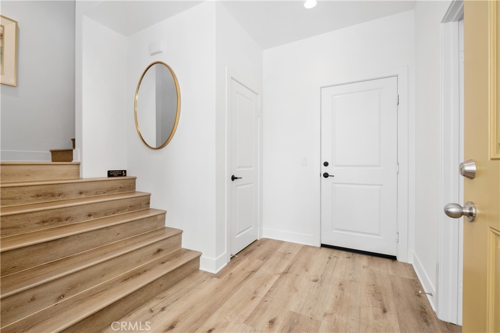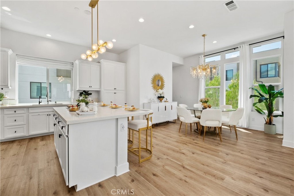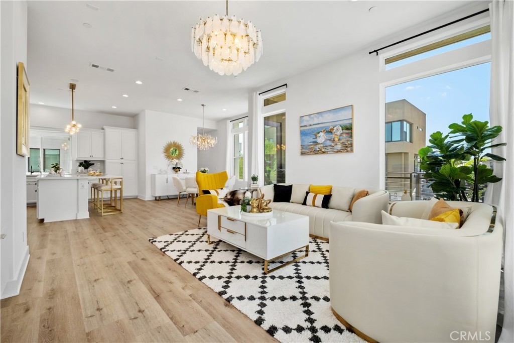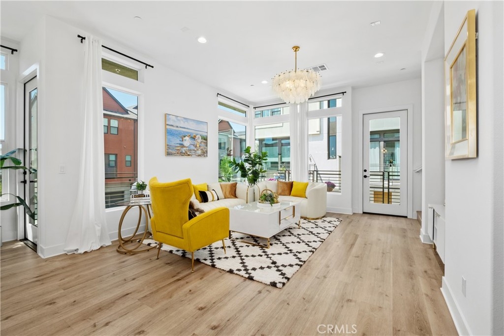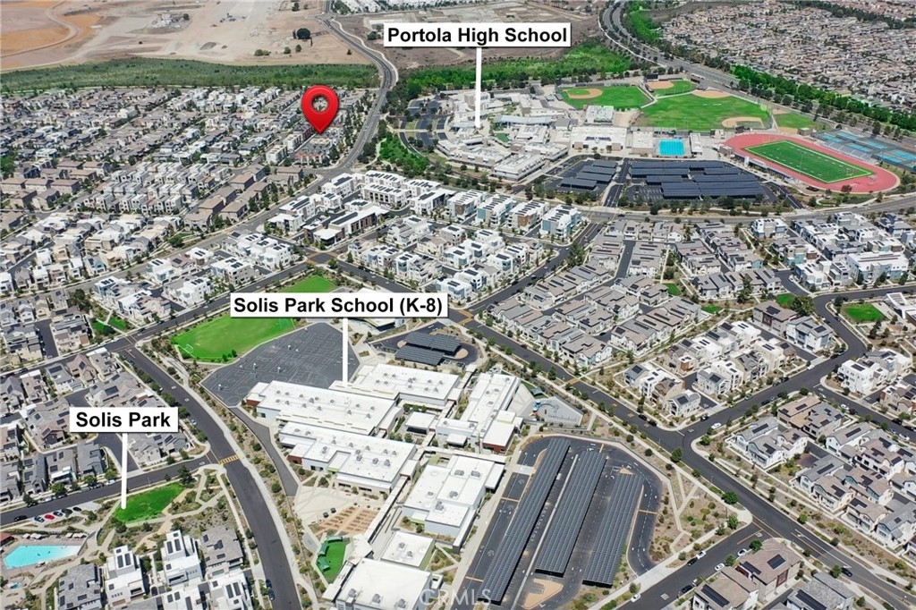 Like-New Luxury Upgraded Turnkey End-Unit Residence in Irvine Great Park Neighborhood–Exceptional Value! Just Minutes’ Walk to top-rated Portola High School and Solis Park School (K–8) in the award-winning Irvine Unified School District—daily drop-offs are skipped, making life a true breeze for parents. 3 beds, 2.5 baths, and 1,812 sqft of living space. Premium End Unit boasts superior natural light, enhanced privacy, a quieter setting, a larger front yard, and an L-shaped deck. The expansive Open-Concept Layout seamlessly connects the kitchen, living, and dining areas, enhanced by 10-foot ceilings to create a harmonious flow of space. Oversized windows paired with floor-to-ceiling doors bathe the interiors in abundant natural light, accentuating the home’s spacious design and luxurious appeal. Tasteful upgrades include whole-house wood flooring, whole-house water softening system, and elegant chandeliers. Stunning primary bedroom suite features a walk-in closet, dual vanity, and a walk-in shower. Two secondary bedrooms are generously sized too. The first floor offers ample storage closets and direct access to a side-by-side 2-car garage. Energy-saving features include leased solar system, EV charger pre-wire, energy-efficient windows,and tankless water heater. Just minutes from Woodbury Town Center, Irvine Spectrum Center, and Kaiser Permanente, etc. Enjoy Great Park’s world-class recreational amenities and the state-of-the-art sports complex, with easy access to I-5, 133, 405, and 241. Only 18–25 minutes’ drive to Newport Beach and Laguna Beach.