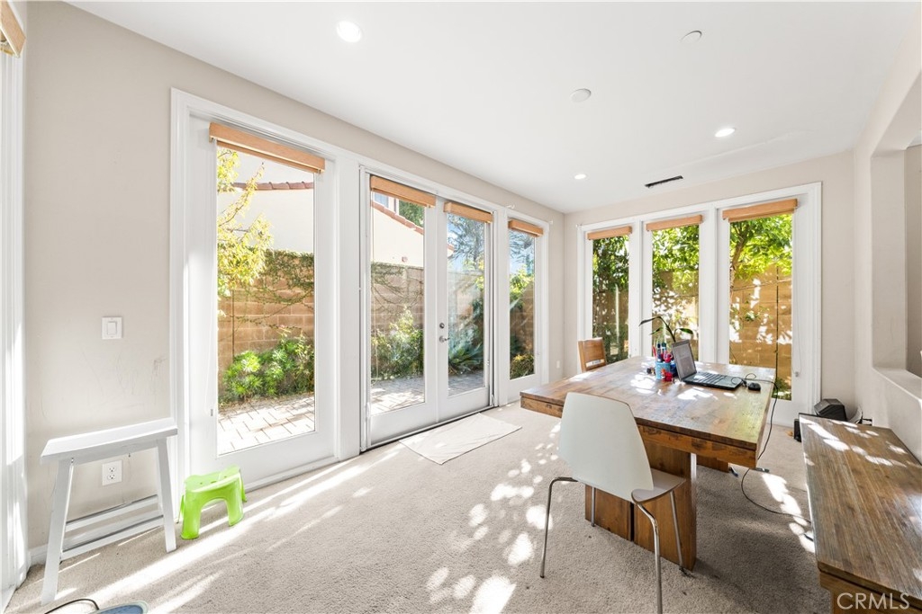 Welcome to this detached spectacularly previous model home with 3 bedroom, 2.5 bedroom in the highly sought-after Stonegate community of Irvine. This home on a premium corner lot and offering 2,047 sqft of open living space., bright open plan plan, an expanded dining room upgraded from a California room, perfectly designed for modern comfort. Large kitchen including quartz countertops, center island, recessed lighting, windows with premium split-shutters. Upstairs, the luxurious primary suite with dual vanities, large walk-in closet. Two secondary bedrooms, a full bath, and an upstairs laundry room offer comfort and convenience. A professionally landscaped backyard with a lot of fruit trees, flowers, perfect for relaxation. Paid-off Tesla Solar System will save you a lot of electric bill, brand new water softener, Tesla car charger in the garage. Residents of Stonegate enjoy Low HOA Fees. access to pools, spas, BBQ areas, parks an tennis courts, walking distance to top-ranked Stonegate Elementary, Woodbury Town Center and Jeffrey Open Trail.