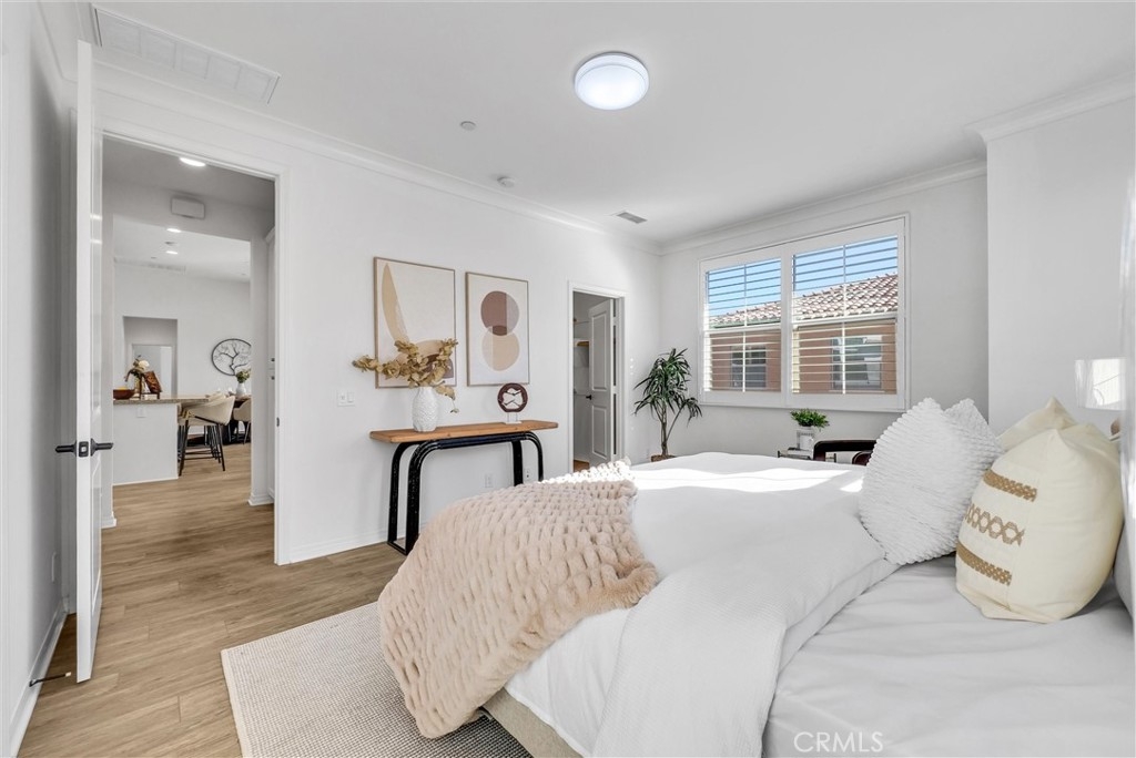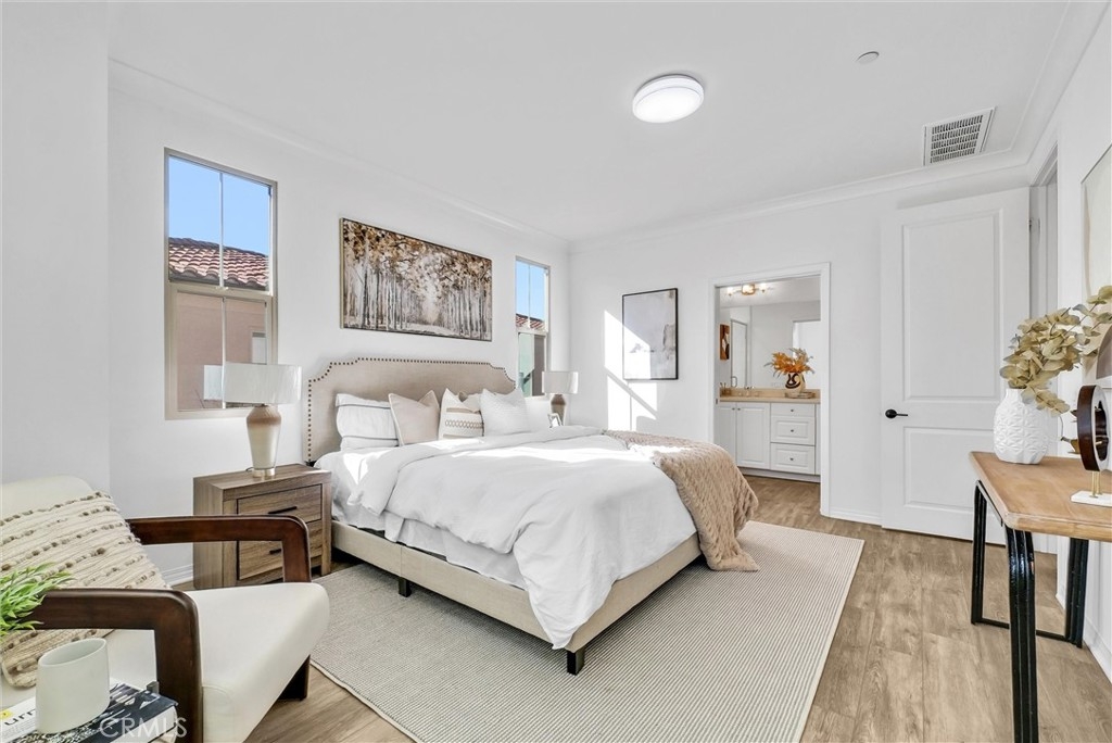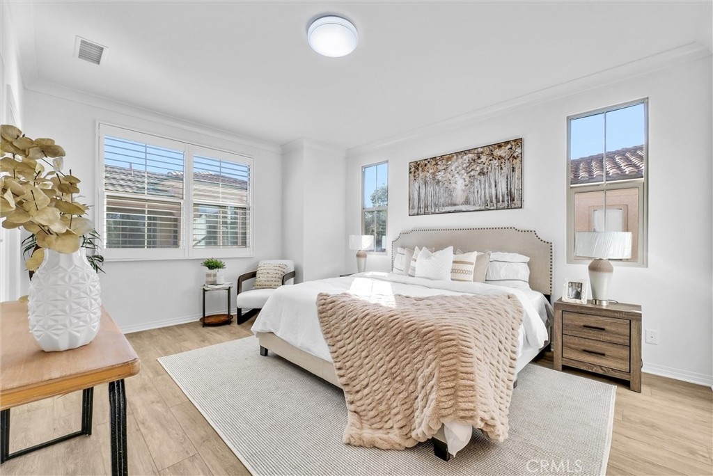 Welcome to this stunning home nestled in the beautiful community of Eastwood Village in Irvine. Offering an exceptional blend of comfort, style, and convenience, this 3-bedroom, 2-bathroom two-story home presents an incredible opportunity to own a slice of paradise in one of Irvine's most sought-after neighborhoods. As stepping, there will be greeted by a private courtyard. The lower level is high ceiling with 2-car attached garage. Step up into a spacious and inviting open concept living space that seamlessly connects the living, dining, and kitchen areas. Large windows flood the interior with natural light, creating a bright and welcoming atmosphere. The sleek kitchen is a chef's dream, featuring kitchen island, stainless steel appliances, countertops, and ample cabinet space. Enjoy outdoor living on your private covered deck, perfect for alfresco dining, relaxation, or container gardening. It's an inviting space to unwind after a long day. Next to the kitchen area, you'll find a laundry room for a full-size washer and dryer. The suite features walk-in closet and en-suite bathroom with modern fixtures and finishes. Throughout the other side of kitchen, two well-sized bedrooms share a full bath. This home is located in a community offers an exceptional lifestyle with an array of resort-style amenities, including pool, spa, parks, sports courts, and scenic hiking trails. It also benefits from its proximity to top-rated schools, shopping centers, dining options, and easy access to major freeways. This makes this location unbeatable, while the serene environment offers the perfect escape from city life. Don't miss this rare opportunity to own a piece of comfort and convenience in the heart of Irvine!