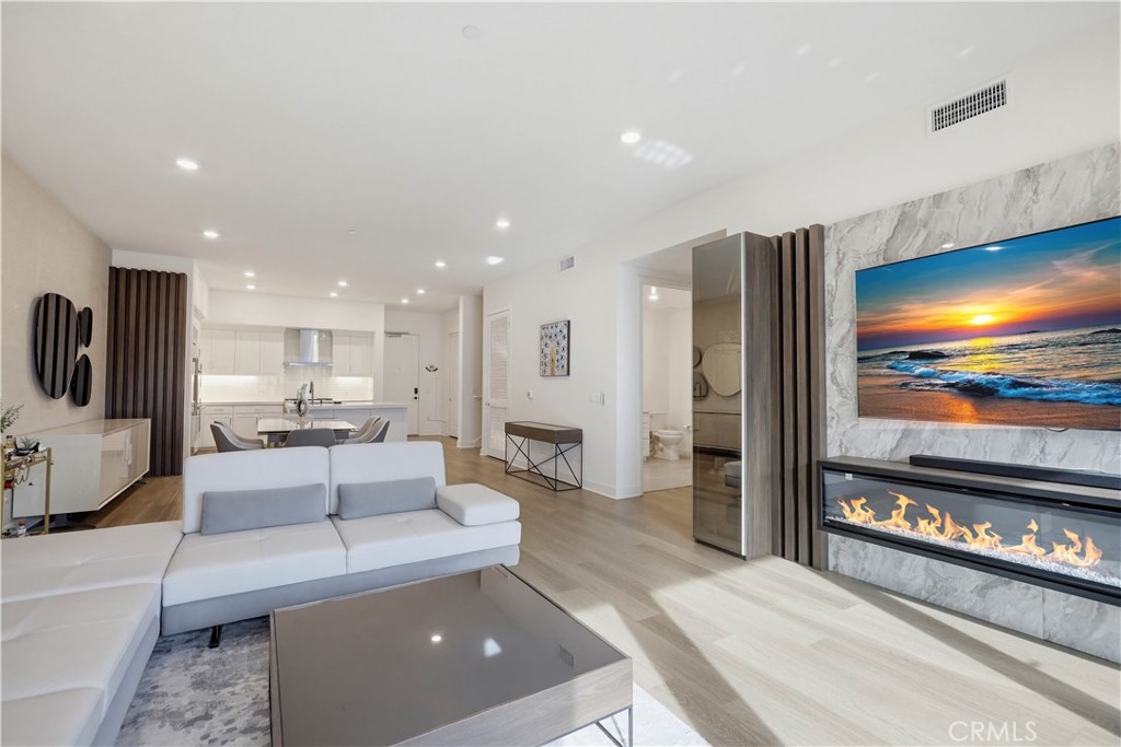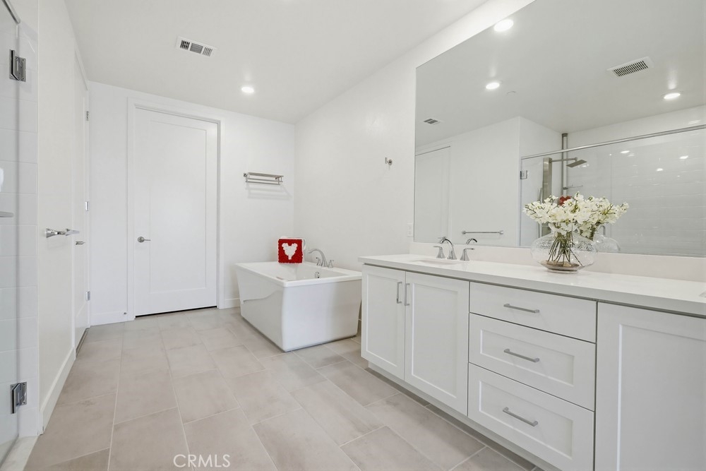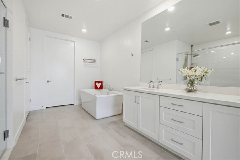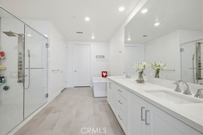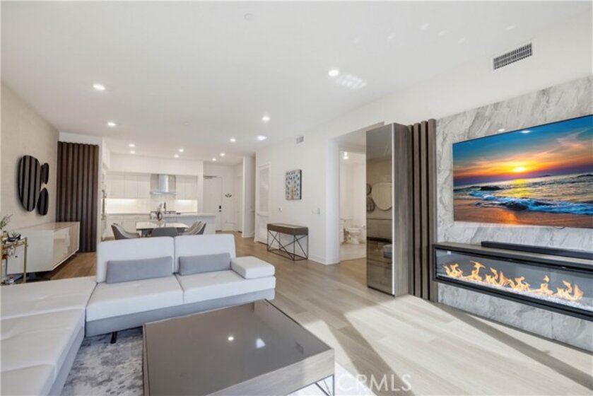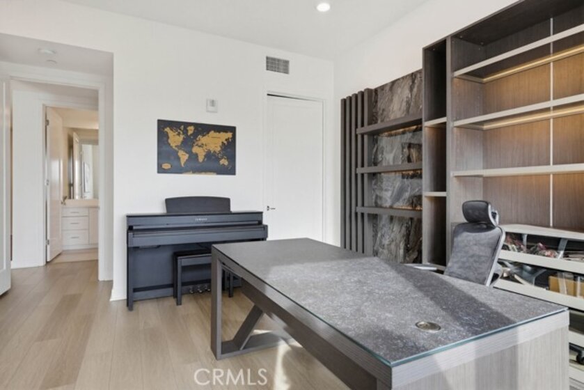 Welcome to this stunning Lexington two-story penthouse, ideally located in the highly desirable Irvine Financial District. This exceptional 3-bedroom + den/office, 3-bathroom residence offers city skyline and community views and an expansive open floor plan spanning approximately 2,548 square feet. Designed for both comfort and sophistication, the home features a seamless flow between the living, dining, and kitchen areas, creating an inviting and spacious ambiance. The first level showcases a state-of-the-art kitchen, a true centerpiece complete with top-of-the-line appliances, sleek countertops, and abundant cabinetry—perfect for both everyday living and entertaining. The expansive living area is highlighted by soaring high-volume ceilings and dramatic glass windows that flood the space with natural light while framing stunning views. A first-floor bedroom provides ideal accommodations for guests or extended family, while a custom built-out den/office adds exceptional versatility to this highly upgraded luxury condominium. All three bedrooms are generously sized and enjoy city views. The second-level primary suite is a serene retreat featuring a luxurious en-suite bathroom with a spa-inspired custom walk-in shower, soaking tub, modern fixtures and a large custom walk-in closet, offering a true resort-quality experience. Additional highlights include luxury vinyl flooring throughout, custom wall treatments, automated window shades, LED energy efficient recessed lighting, whole-house water filtration system and two side-by-side parking spaces conveniently located near the elevator. The entire home has been thoughtfully designed. Beyond the residence, enjoy access to world-class amenities at Lexington and Central Park West, including two resort-style swimming pools, an elegant clubhouse, state-of-the-art fitness center, yoga studio, outdoor spas, multipurpose and conference rooms, lounge with bar and fireplace, catering kitchen, outdoor barbecue areas, entertaining terrace with fireplace, pickleball court, half basketball court, tot lot, landscaped paseos, and mini-parks. Ideally situated near vibrant dining, upscale shopping, and cultural attractions, this penthouse offers unmatched convenience to Fashion Island, Newport Beach, South Coast Plaza, Diamond Jamboree, UCI, John Wayne Airport, and pristine Orange County beaches.