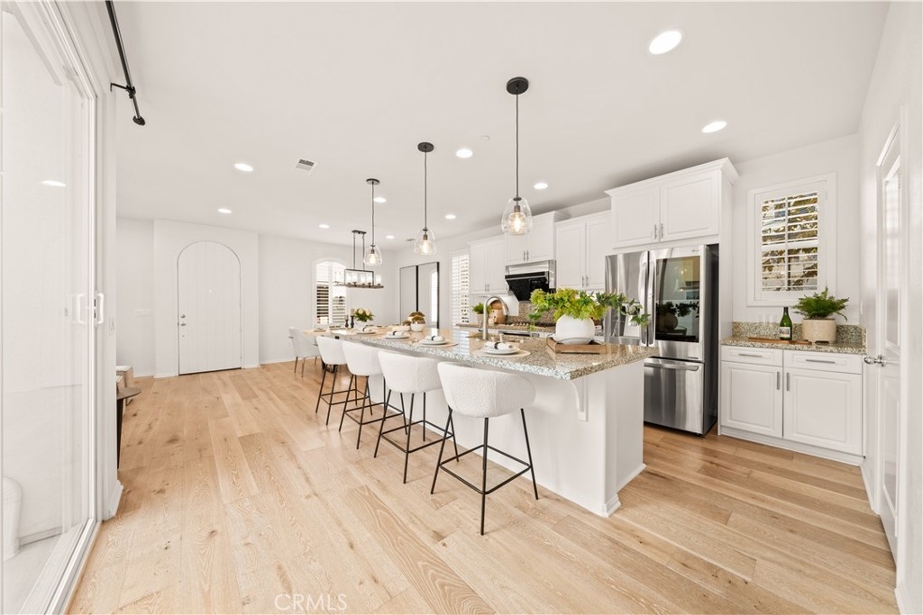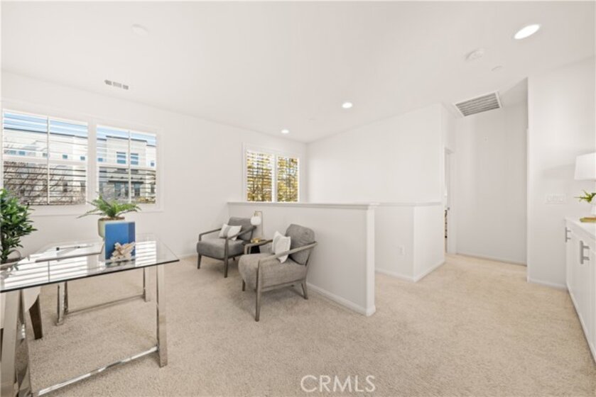 Located in the highly desirable Beacon Park community, this modern corner-lot residence offers an excellent location within walking distance to nearby parks and schools. The thoughtfully designed floor plan features a private en-suite bedroom on the main level, ideal for guests or multi-generational living. Contemporary finishes and clean architectural lines enhance the home’s modern appeal throughout. The main living areas are bright and open, flowing seamlessly into a private courtyard-style outdoor space, perfect for relaxing or entertaining. Upstairs, a spacious loft provides flexible use and can easily be converted into a fourth bedroom, home office, or additional living area. The upper level also includes a generously sized primary suite with a walk-in closet and an en-suite bathroom featuring a soaking tub, along with a well-proportioned secondary bedroom. With its corner location, versatile layout, modern design, private outdoor space, and prime setting in one of Irvine’s most sought-after communities, this home also allows residents to enjoy Great Park’s exceptional amenities, including parks, pools, trails, and community facilities, offering a vibrant and convenient lifestyle.