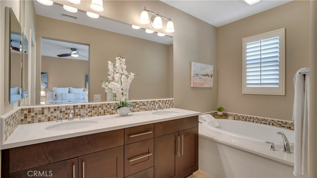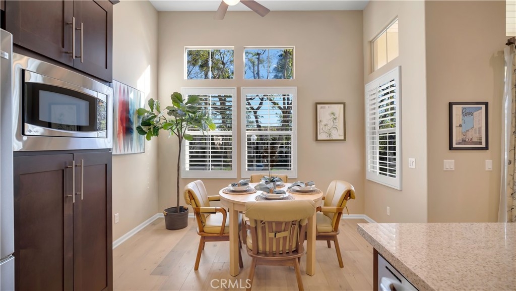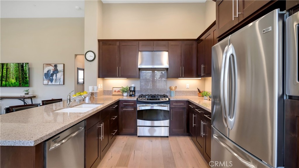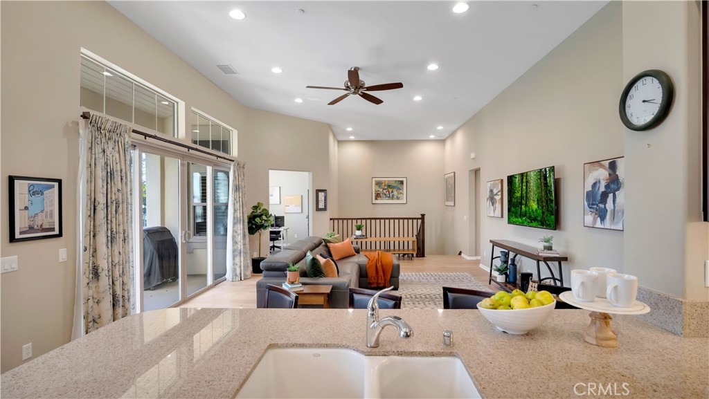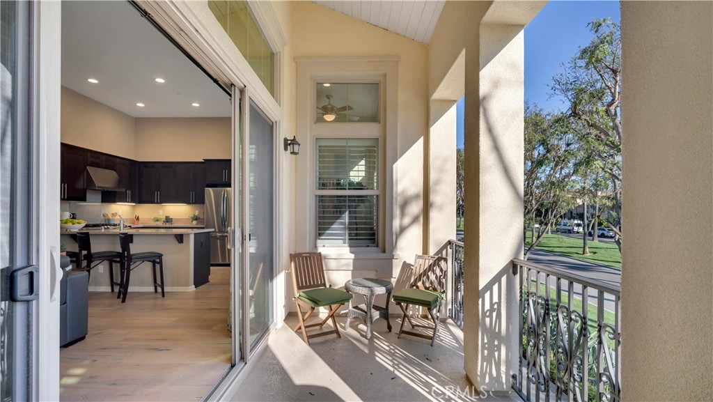Welcome to 17 City Stroll in Irvine’s sought-after Woodbury village — a beautifully upgraded 2-bedroom, plus den, 2.5-bath carriage-style condo offering comfort, style, and an unbeatable location. This light-filled home features an open and airy floor plan with cathedral ceilings, hardwood floors and expansive windows that frame charming neighborhood views. Just off the main living area, a versatile den provides the perfect space for a home office, reading nook, or potential 3rd bedroom to fit your lifestyle. The spacious main living area flows seamlessly into a modern kitchen designed for both everyday living and entertaining, with generous counter space, quality appliances, and a functional layout. Step outside to the oversized private balcony — an ideal setting to relax or dine outdoors while overlooking the welcoming neighborhood. Situated on the main level, both bedrooms are thoughtfully designed with en-suite bathrooms, offering ideal privacy for residents and guests. The primary suite serves as a peaceful retreat with ample closet space and a well-appointed bathroom. Completing the home is an oversized attached two-car garage, providing additional storage and convenient direct access. Enjoy low-maintenance living just moments from Woodbury’s resort-style amenities, including multiple parks and sparkling pools, scenic walking trails, and the vibrant Woodbury Town Center with its shopping and dining. Located within the award-winning Irvine Unified School District, this home blends lifestyle, location, and livability in one exceptional offering. Experience the best of Woodbury living at 17 City Stroll.