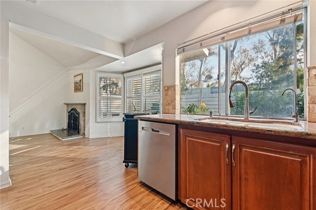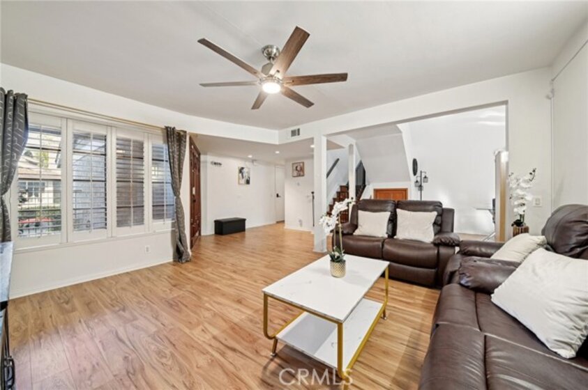 Welcome to this stunningly upgraded two-story townhouse, ideally located in the highly sought-after Woodbridge Village community! Spanning 1,573 sq. ft., this home features 3 bedrooms and 2.5 bathrooms designed for comfort and convenience. With no one above or below and a serene greenbelt view, it provides both privacy and tranquility. Step inside to a bright, open floor plan with soaring vaulted ceilings, hardwood flooring, and expansive windows throughout the home, all enhanced with planter shutters, adding charm and greenery to every room. The gourmet kitchen is a chef’s delight, featuring rich wood cabinetry, granite countertops, stainless steel appliances, a 4-burner stove, tile backsplash, recessed lighting, and a charming garden window. The kitchen flows seamlessly into the dining and living areas, which open through sliding glass doors to a private backyard retreat—perfect for entertaining and enjoying the Southern California lifestyle. Downstairs includes a convenient powder room for guests. Upstairs, the spacious primary suite boasts a remodeled bath with granite vanity and spa-inspired soaking jetted tub, while two additional bedrooms share a beautifully updated bathroom with walk-in shower, granite vanity, and tile flooring. Additional highlights include direct access to a two-car garage, in-home laundry, and Upgraded Windows! Woodbridge Village residents enjoy resort-style amenities: 22 pools, 24 tennis courts, pickleball, volleyball, spas, beach lagoons, lakes, playgrounds, walking trails, and more—including opportunities for biking, fishing, boating, and watersports. The home is within walking distance to award-winning schools and just minutes from shopping, dining, UCI, and John Wayne Airport. Don’t miss this rare chance to live in one of Irvine’s most desirable communities!