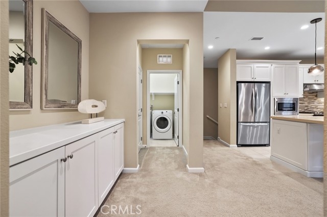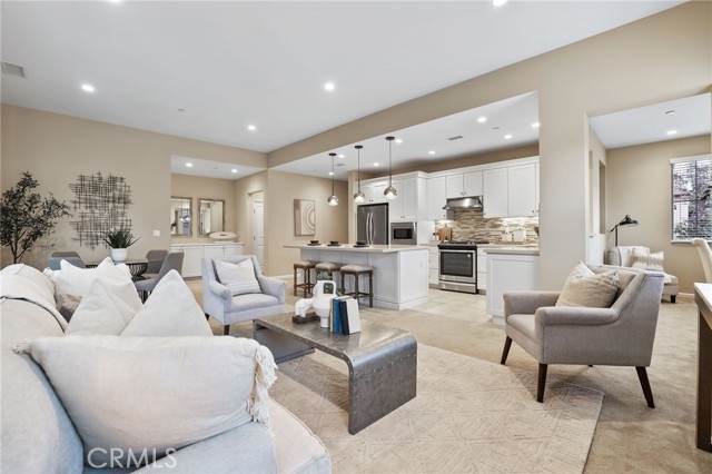 This stylish residence combines comfort, functionality, and natural light throughout. The entry welcomes you with a warm foyer leading upstairs to a bright open concept living area featuring a spacious great room, dining area, and modern kitchen. The gourmet kitchen showcases a large center island, quartz countertops, stainless steel appliances, custom backsplash, and pendant lighting, all flowing seamlessly into the living and dining spaces. A sliding glass door opens to an oversized covered balcony surrounded by greenery, perfect for morning coffee or evening relaxation. A versatile den provides the perfect space for a home office or quiet reading nook. The home offers two comfortable bedrooms and two full bathrooms. The primary suite features multiple windows, a walk-in closet, and a spa-inspired bathroom with dual vanities and a glass-enclosed shower. The guest bedroom is equally inviting, with easy access to a full hallway bath. Eastwood Community is one of Irvines most popular Villages. Walk to acclaimed Eastwood Elementary School located within the Village, easy access to Jeffrey Open Space Trail, and Resort Style amenities for swim, play and picnic. Fantastic Walkability: Enjoy shopping and Dining at nearby Cypress Village Center, Woodbury Town Center, Orchard Hills, or Irvine Spectrum, all just minutes away. Easy access to freeway. Don't miss the opportunity!