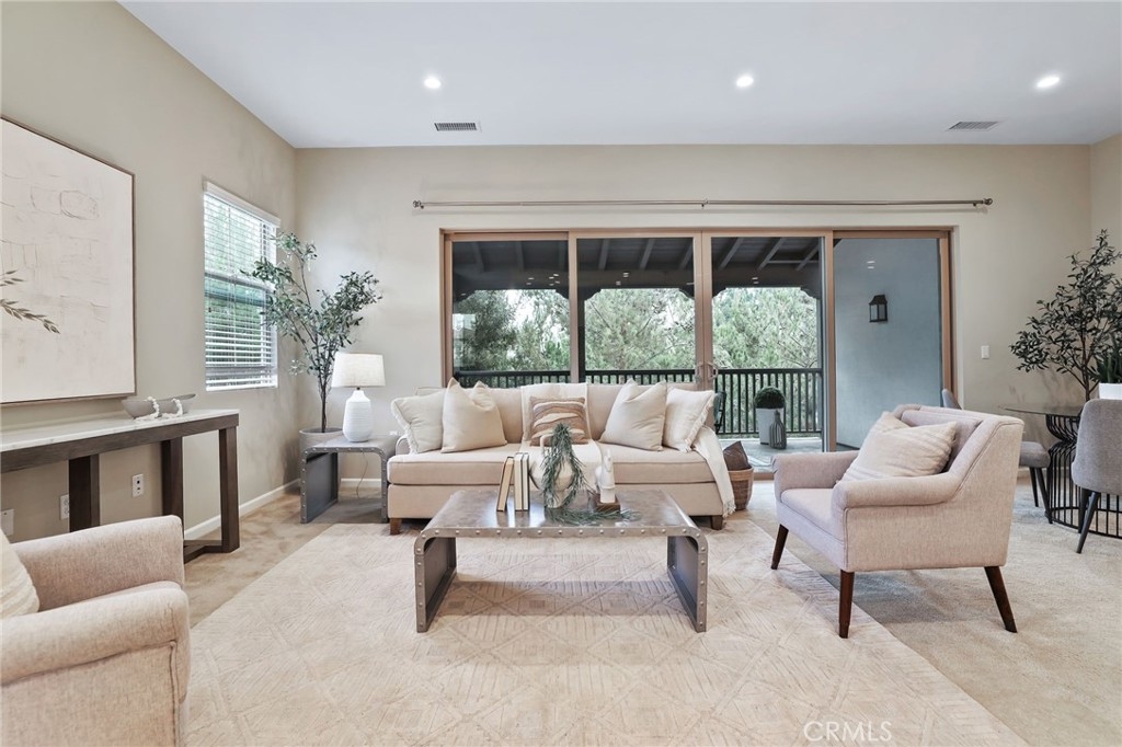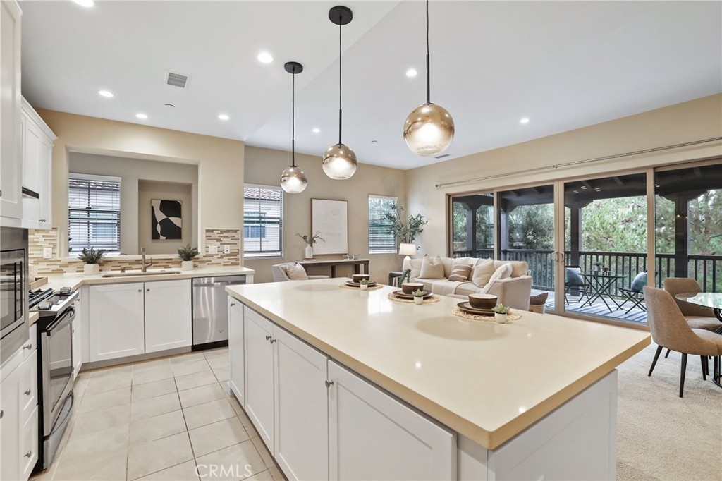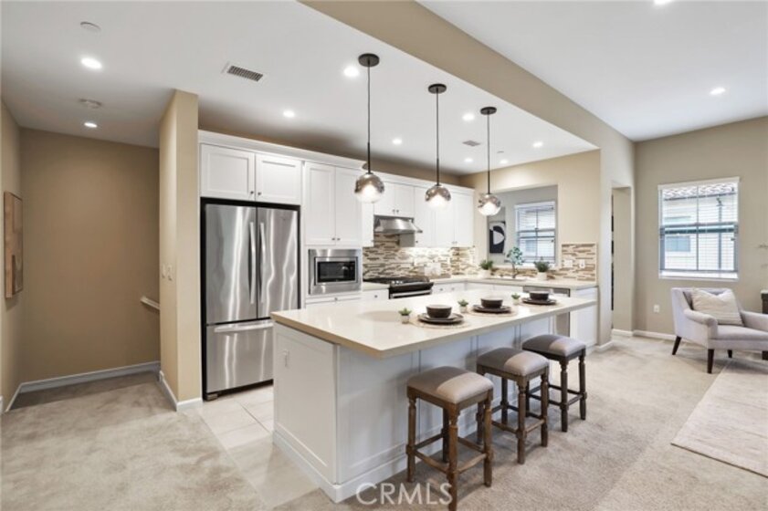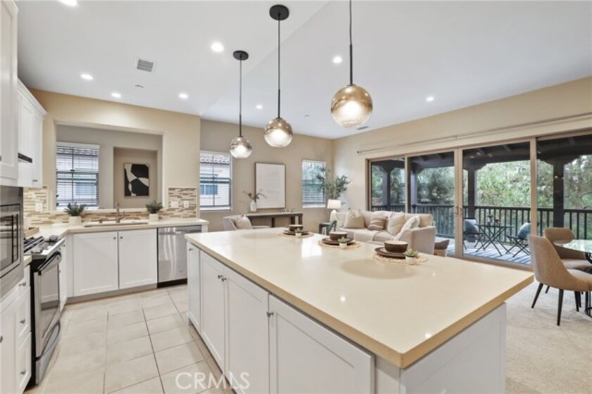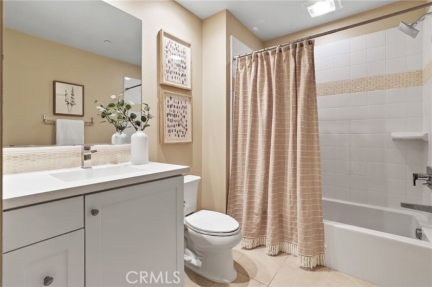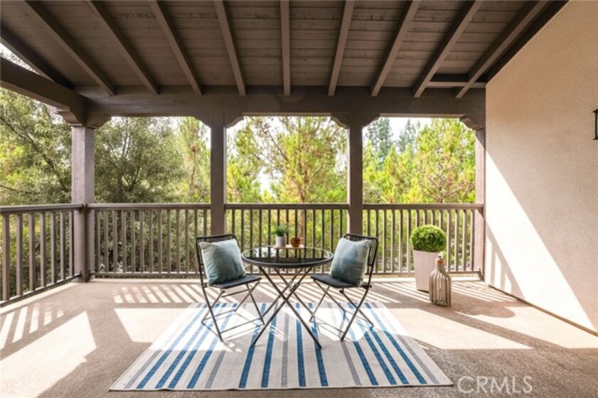 This stylish residence combines comfort, functionality, and natural light throughout. The entry welcomes you with a warm foyer leading upstairs to a bright open concept living area featuring a spacious great room, dining area, and modern kitchen. The gourmet kitchen showcases a large center island, quartz countertops, stainless steel appliances, custom backsplash, and pendant lighting, all flowing seamlessly into the living and dining spaces. A sliding glass door opens to an oversized covered balcony surrounded by greenery, perfect for morning coffee or evening relaxation. A versatile den provides the perfect space for a home office or quiet reading nook. The home offers two comfortable bedrooms and two full bathrooms. The primary suite features multiple windows, a walk-in closet, and a spa-inspired bathroom with dual vanities and a glass-enclosed shower. The guest bedroom is equally inviting, with easy access to a full hallway bath. Eastwood Community is one of Irvines most popular Villages. Walk to acclaimed Eastwood Elementary School located within the Village, easy access to Jeffrey Open Space Trail, and Resort Style amenities for swim, play and picnic. Fantastic Walkability: Enjoy shopping and Dining at nearby Cypress Village Center, Woodbury Town Center, Orchard Hills, or Irvine Spectrum, all just minutes away. Easy access to freeway.