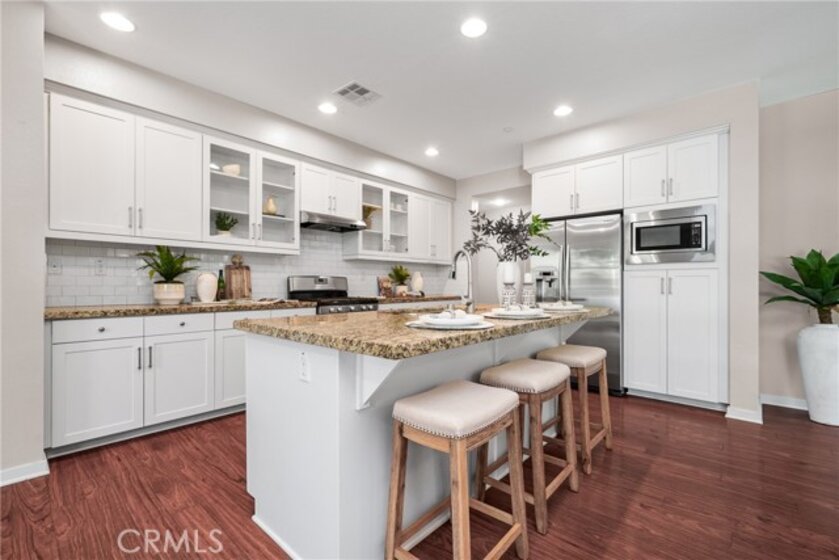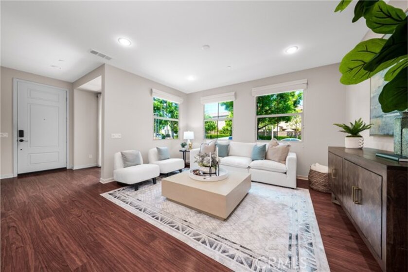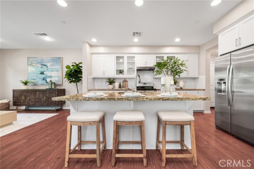 * Premium End-unit * located in the sought-after village of Portola Springs in Irvine. This charming beautiful home offers lots nature light. Impeccably maintained with open floor plan concept features laminated flooring through 1st floor. Upgraded kitchen includes stainless appliances, large island, granite countertops, tile backslpash and white shaker cabinets with glass doors. The dining area seamlessly opens the Great Room with sliding door to the front courtyard is ideal for entertainment. Upstairs features the primary suite, 2 spacious bedrooms and hallway bathroom. Convivence upstairs laundry space. The 2-car attached garage with epoxy floor and overhead storage racks for extra storage. Conveniently located with walking distance to one of Portola Spring Community center. Nearby shopping, dining, and entertainment. This home is also within the highly acclaimed Portola High School. Enjoy the community many amenities include pool, spa, sport courts, BBQ, playgrounds, and parks.