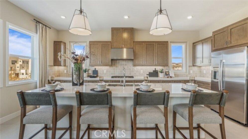 Comprised a spacious and inviting open-concept layout with convenient access to a covered deck for seamless entertaining. The three primary bedrooms are tucked away near the front of the home, including the luxe owner’s suite with direct access to a spa-inspired bathroom and walk-in closet. A two-bay garage on the first level completes the home.