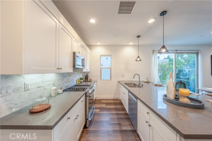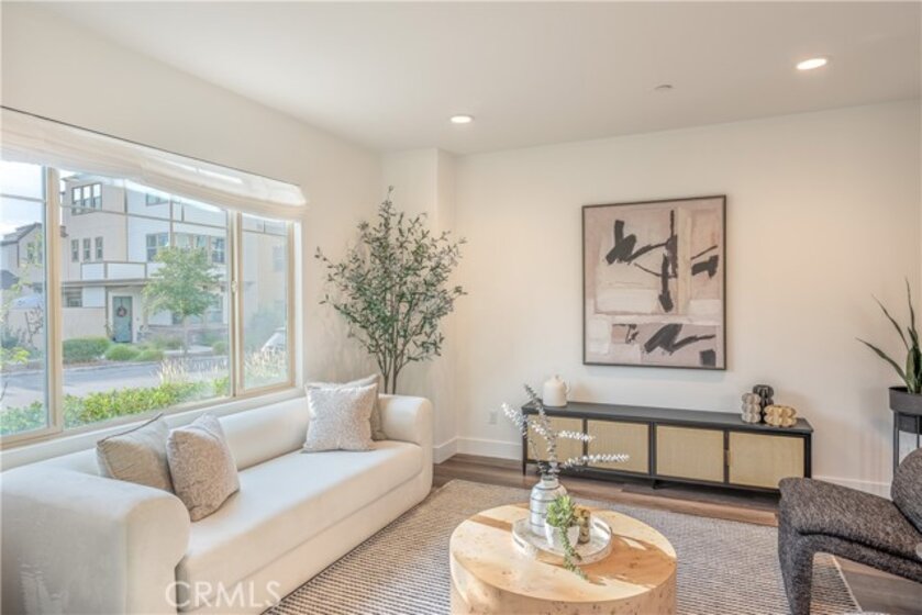 Discover the unparalleled lifestyle of Great Park in this rare and highly sought-after corner unit at 177 Frame. Perfectly positioned, this contemporary 3 Bed + oversized Loft/4th Bedroom offers a blend of modern luxury, exceptional natural light, and a truly walkable location in the prestigious Cadence Park neighborhood. This home's premium corner lot location provides an open, airy feel with elevated views and a sense of privacy rarely found in the area. Step inside to a spacious, bright, and turnkey interior featuring high-end finishes throughout. The heart of the home is a stunning chef's kitchen boasting a gorgeous designer-style countertop and backsplash, a large center island, and stainless steel appliances, flowing seamlessly into the open-concept great room and dining area—perfect for daily life and entertaining. The flexible floor plan is a dream for modern families. While officially a 3-bedroom, a spacious third-floor oversized loft with a full bath and private balcony is currently used as an ideal 4th bedroom or a perfect private office/retreat, offering endless versatility. Retreat to the generous primary suite with a large walk-in closet and a luxurious en-suite bathroom. Location, Location, Location! You are just a short stroll from the award-winning Cadence Park K-8 School and highly acclaimed Portola High School, making school runs a breeze. Enjoy the resort-style amenities that define Great Park Neighborhoods: sparkling pools, spas, BBQ areas, clubhouses, playgrounds, and an extensive network of scenic walking and biking trails. Conveniently located minutes from the Great Park's world-class sports and recreational facilities, as well as premier shopping and dining at Woodbury Town Center and Irvine Spectrum. This is a phenomenal opportunity for a discerning buyer seeking a prime corner location, excellent schools, and the ultimate Irvine lifestyle. Welcome Home!
