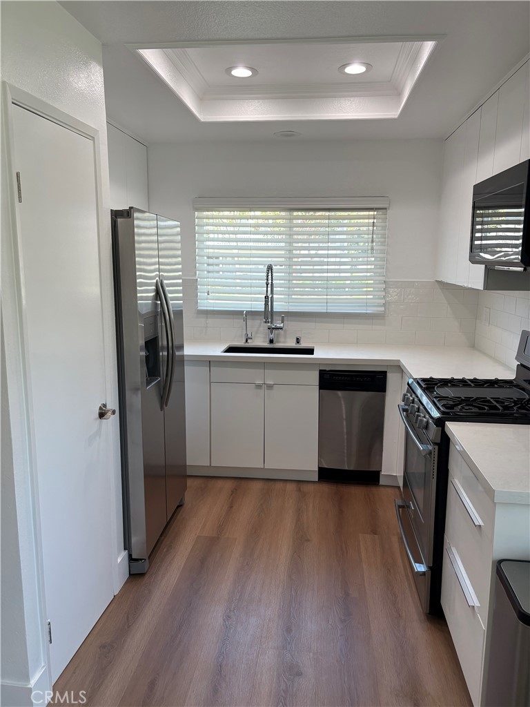 Welcome to this beautifully remodeled, single level move-in ready condo in the highly sought-after community, right in the heart of Irvine. This light-filled home on a corner offers 2 bedrooms, 2 baths, and has been thoughtfully updated with brand-new kitchen counter top, completely remodeled bathrooms, brand new Refrigerator, brand new Washer Dryer, beautiful wood laminate floors , new windows, new interior paint, and updated lighting. The primary suite showcases an upgraded bathroom and walk-in closet, while the second bedroom features an updated private bath with a luxurious tiled shower. Additional enhancements include recessed lighting throughout. All you need to do is bring your furniture and settle in! Experience serene, easy living as you step through dual-pane vinyl sliding doors onto your private patio, perfect for outdoor dining or soaking up the California sunshine. The 1-car garage provides ample storage space. Located just minutes from parks, playgrounds, and a refreshing community pool, this home is also within walking distance of top-rated schools. Nestled in the highly desirable Northwood Horizon community, this property is minutes from the Irvine Spectrum, Marketplace, Great Park, major freeways, and top-rated schools. The community features low HOA fees (no Mello-Roos) and provides access to two private pools with spas, all within walking distance of Orchard Park. This exceptional property presents a rare opportunity in a sought-after Irvine location. You'll love the convenience of being close to a variety of grocery stores, retail center as well as a wide range of shopping and dining options. With quick access to both the 5 and 405 freeways, this ideal location truly offers the best of Irvine living!