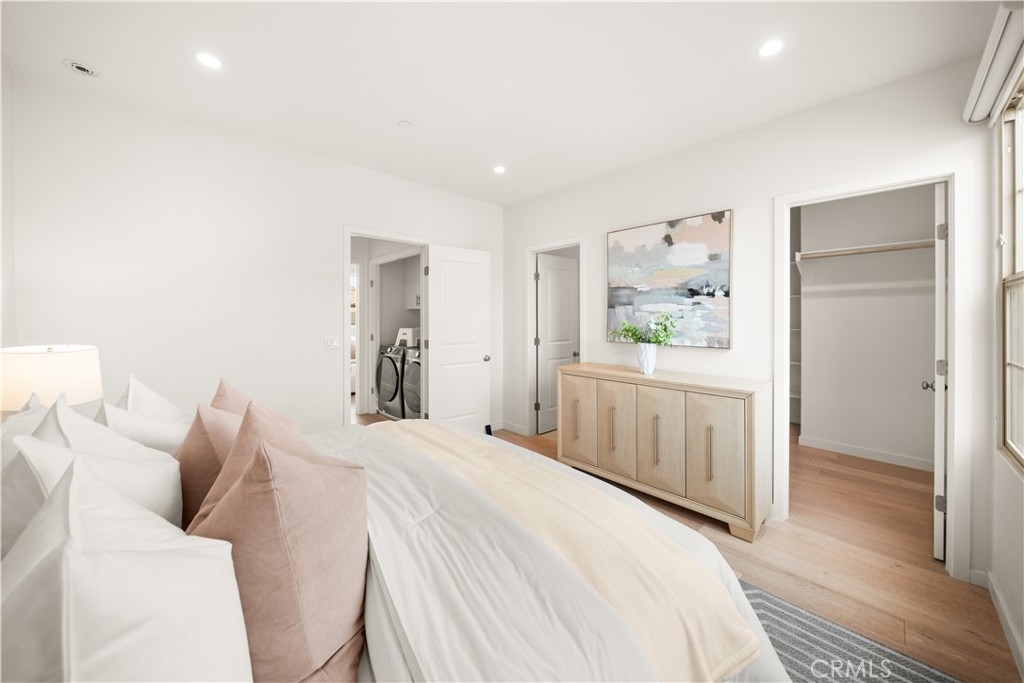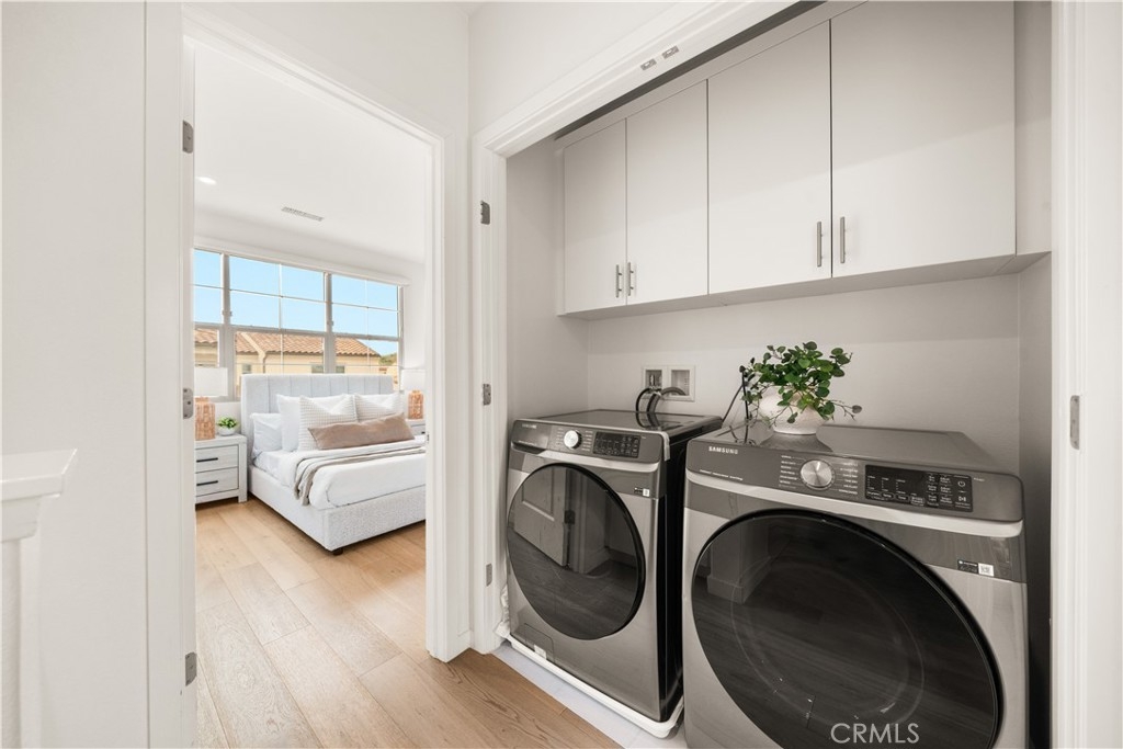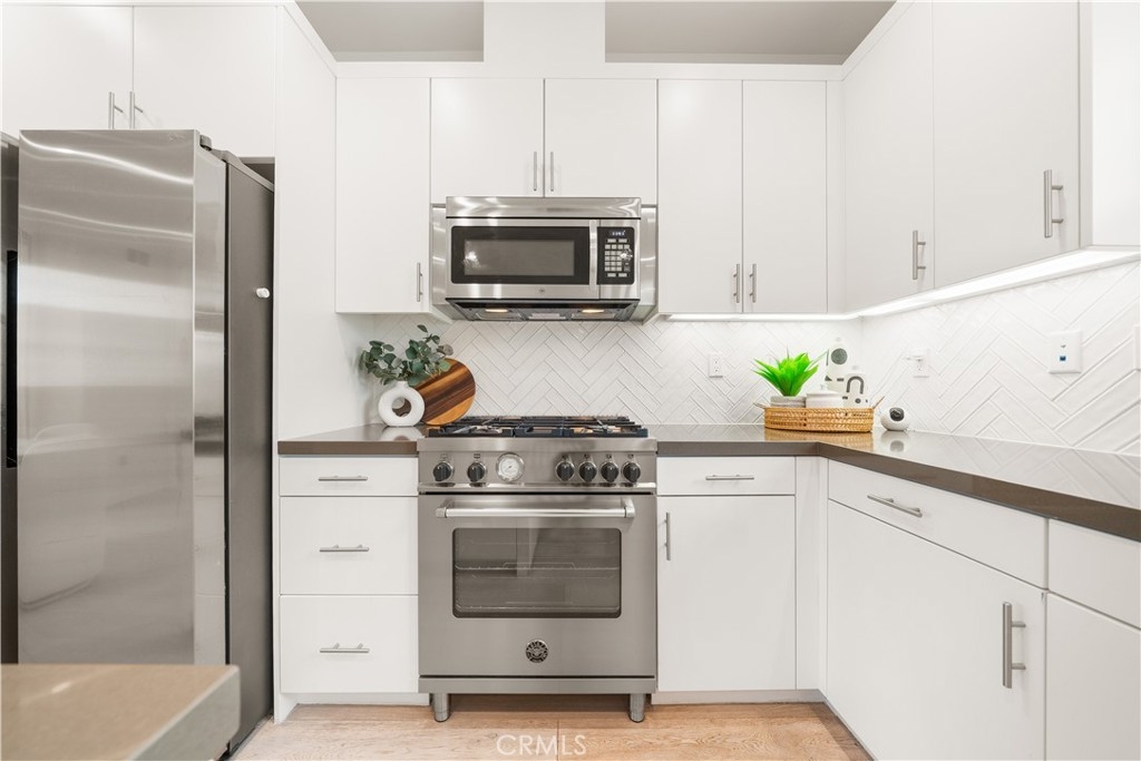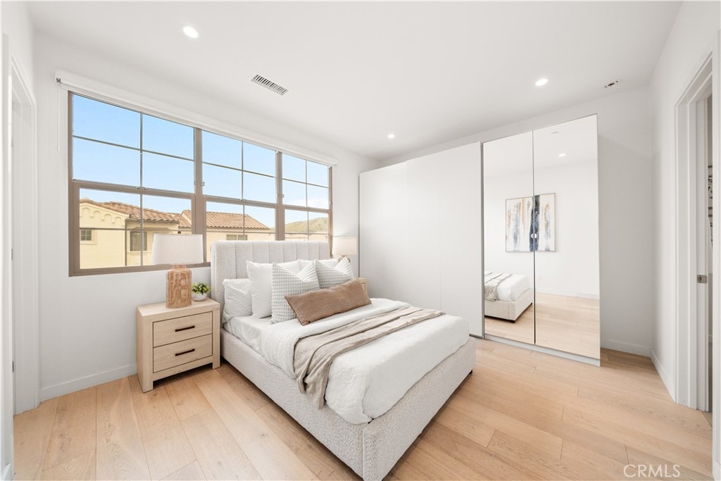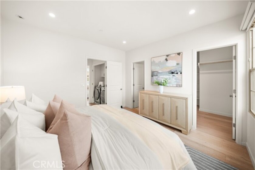 Situated in the serene hillside setting of Portola Springs, 184 Elkhorn is a beautifully maintained Brisa Plan 1 condominium in the heart of Irvine. The home showcases high-end engineered hardwood flooring throughout, creating a seamless and elevated feel, complemented by a bright, open layout designed for both comfort and functionality. The modern kitchen is thoughtfully appointed with quartz countertops, white shaker-style cabinetry, stainless steel appliances, and a generous island with bar seating, seamlessly connecting to the living and dining spaces filled with natural light. The seller has also installed a brand-new premium heated water purification system, along with a whole-house water softener system, ensuring improved water quality, reduced mineral buildup, and enhanced protection for plumbing and appliances. A private balcony off the dining area provides a pleasant extension of the indoor living space. The living room and bedrooms are enhanced with sleek motorized window shades, offering a modern, tech-forward touch while providing effortless light control and privacy. Upstairs, the residence offers two spacious en-suite bedrooms, including a well-designed primary suite with a walk-in closet, dual vanities, and a tiled walk-in shower. Additional highlights include upstairs laundry, high ceilings, recessed lighting, an energy-efficient whole house fan, and a tankless water heater. The direct-access two-car attached garage features built-in storage and is equipped with a Tesla-compatible EV charging outlet, making it ideal for electric vehicle owners. Residents of Portola Springs enjoy access to an impressive collection of resort-style amenities, including Olympic and junior Olympic swimming pools, clubhouses, tennis and sports courts, beach volleyball courts, parks, playgrounds, and miles of scenic walking and biking trails. Ideally located near the top of the community, this home is within walking distance to Loma Ridge Elementary School and Portola Springs Community Park, just minutes from Woodbury Town Center and Irvine Spectrum, and a short drive to Laguna Beach and John Wayne Airport.