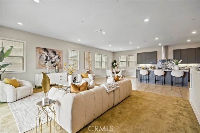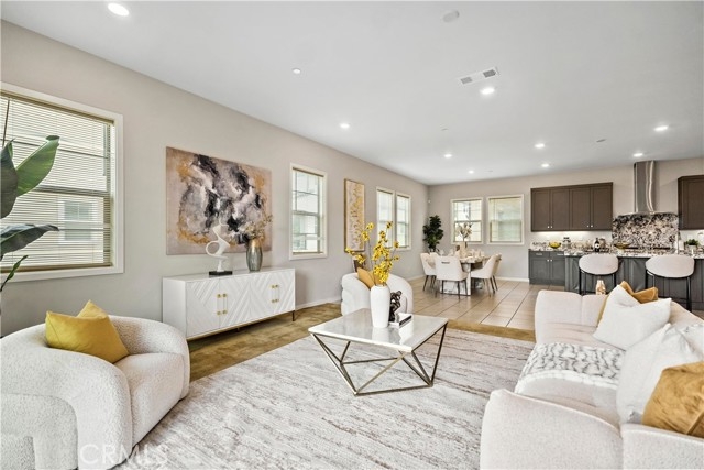 Stunning tri-level condo located in the highly desirable Cadence Park community within Irvine's Great Park. This bright and private corner unit offers 3 bedrooms, 2 full bathrooms, 1 half bathroom, and a spacious third-floor loft that can be used as a bonus room, office, or optional 4th bedroom. The open-concept floor plan seamlessly connects the living, dining, and kitchen areas with multiple balcony retreat spaces ideal for indoor/outdoor living and entertaining. The gourmet kitchen boasts gray cabinetry, stainless steel appliances, and a large center island with bar seating. The luxurious primary suite includes a walk-in closet and a spa-like en-suite bathroom with dual vanities and designer tile flooring.Located just minutes from Cadence Park School, Portola High School, community parks, pools, playgrounds, and trails. Zoned for award-winning Irvine Unified School District. Enjoy the best of Great Park living in this turnkey home.