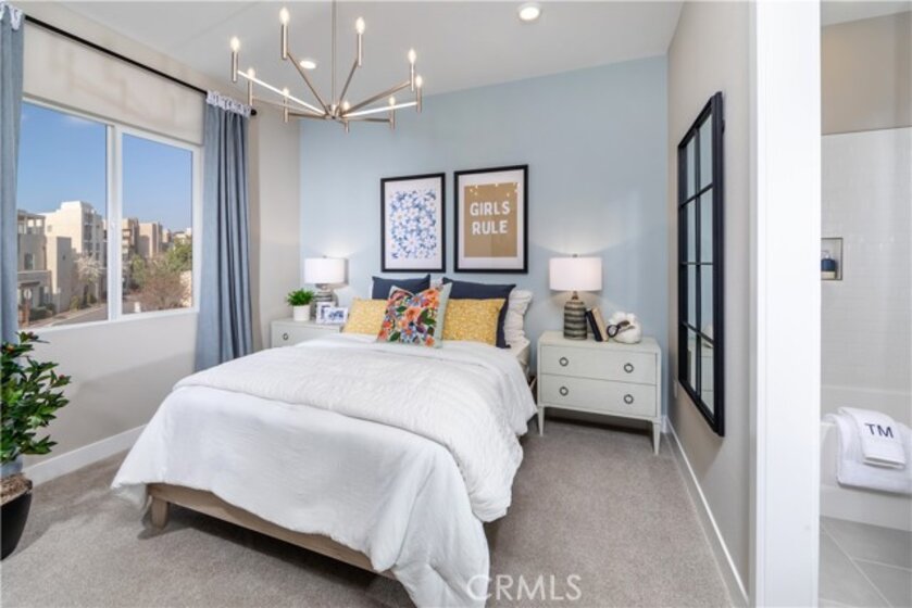 What's Special: Close to Amenities | Large Kitchen Island | 1st Floor Guest Suite. Model Home - Available Now for January Closing! Built by America's Most Trusted Homebuilder. Welcome to the Plan 3 at 186 Carmine in Lily at Great Park! This home invites you in with a charming covered porch and an airy layout designed for connection. The heart of the home features a spacious kitchen with a cozy island and walk-in pantry, opening to the dining and great room for effortless entertaining. A first-floor bedroom with ensuite bath is perfect for guests or extended family, while a versatile flex room with half bath offers space for a home office or gym. Upstairs, the serene primary suite boasts a spa-inspired bath with dual vanities, relaxation tub, and oversized walk-in closet. Three additional bedrooms, a loft, and laundry complete this inviting retreat. Live in the heart of Irvine with access to 17 pools, 9 parks, scenic trails, and a cozy coffee shop. Families enjoy top-rated Irvine schools, while nearby Great Park offers music, art, and seasonal fun. Beaches are just a short drive away, and coming soon, The Canopy will bring 11 acres of dining and shopping to your doorstep. Additional Highlights Include: Covered outdoor living. MLS#IG25275423