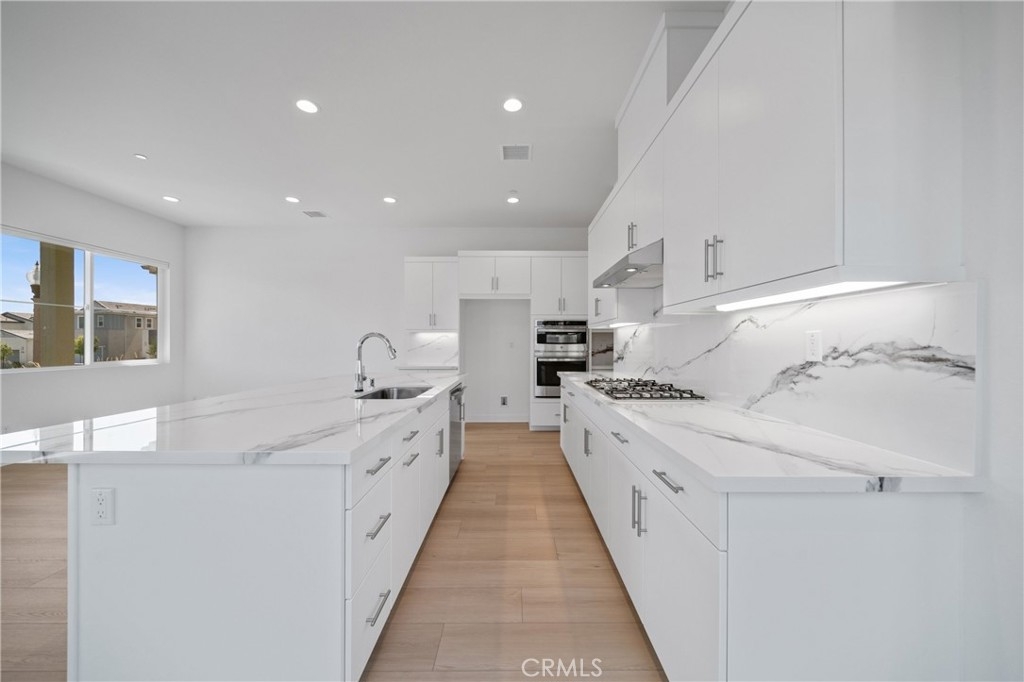 DETACHED Brand new home Located in a corner lot with steps to the pool and club house ,IRVINE SCHOOL DISTRICT, this house has the best South orientation, make every room full of sun light, the KITCHEN is on the FIRST floor , all Oak floor , kitchen countertops are upgraded with newest polished tech, the yard is very private and is finished with turf,also the first floor has a guest bedroom with its own bath.Onto the second floor , you will find huge master bedroom flooded with lights , the other two rooms are on the opposite. The third floor you will find a huge bonus room and a closet inside ready to be turned into another master suite, step to the huge balcony , you can see very nice view to spectrum and Newport Beach .All window treatment is done. Located in the very best location of great park , you can walk to all schools and club house .