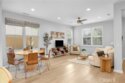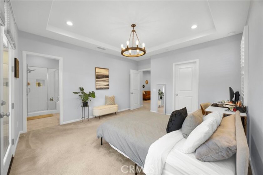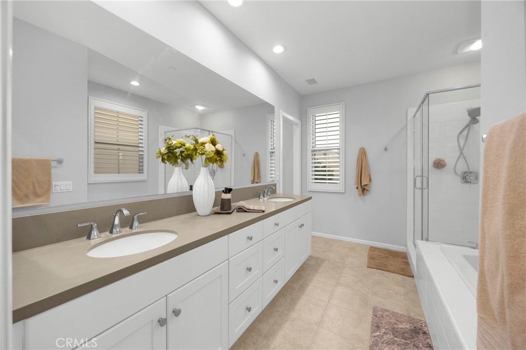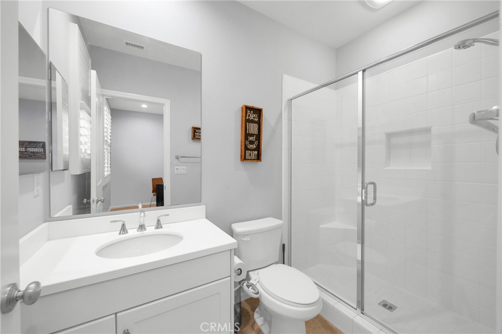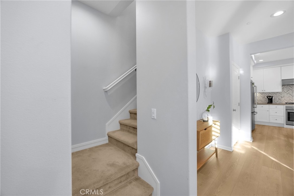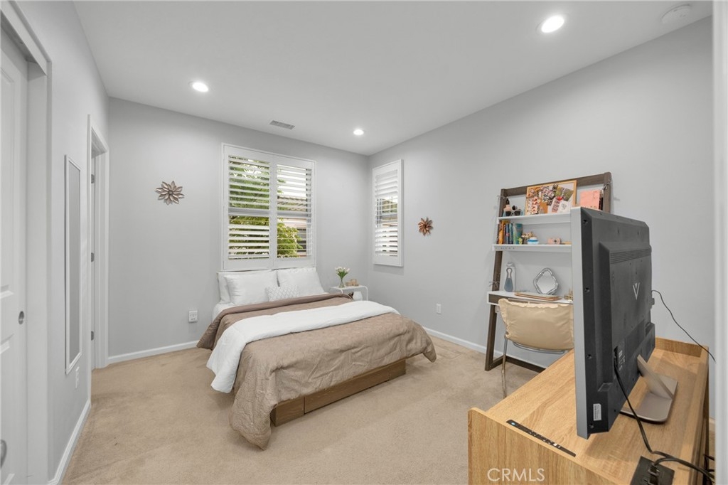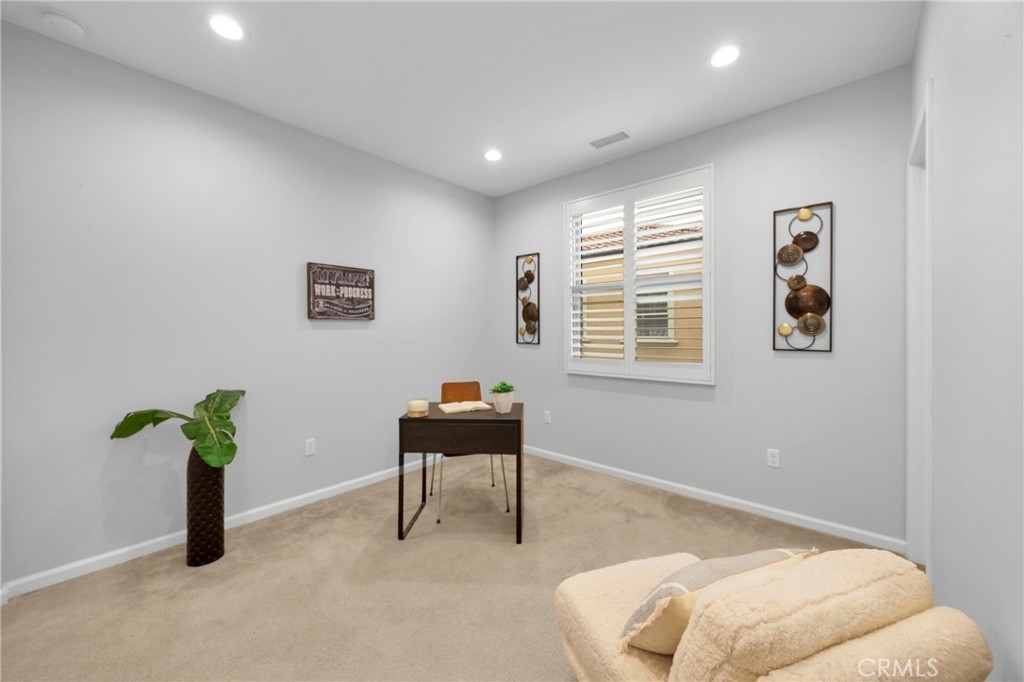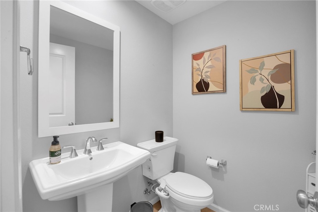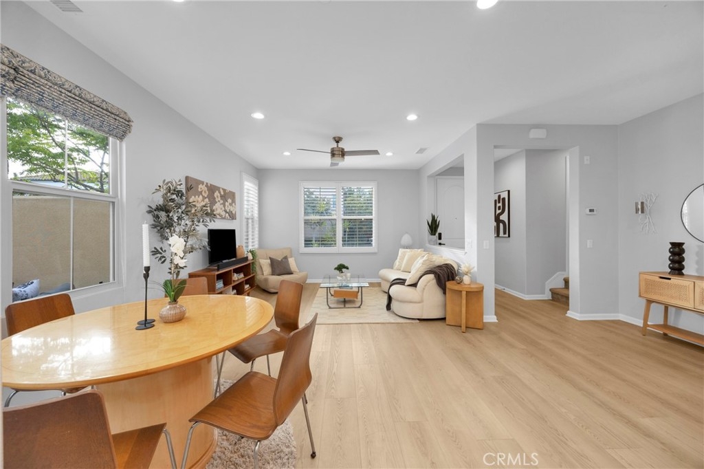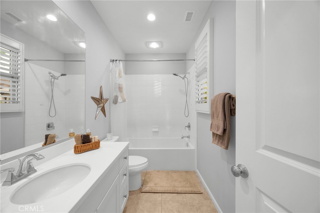 Corner, turnkey home in Portola Springs with an oversized private courtyard and one of the largest and most desirable floor plans in the community. Built in 2016, this 3-bedroom, 3.5-bath home includes a versatile upstairs loft and offers 1,778 sq ft of bright, open living space filled with natural light. The main level features vinyl flooring throughout, a spacious kitchen with a center island, quartz countertops, white shaker cabinetry, upgraded tile backsplash, stainless steel appliances, and seamless flow into the dining and living areas—ideal for everyday living and entertaining. Additional highlights include designer paint, custom window coverings, pendant lighting, recessed lighting throughout, and added insulation for enhanced comfort. Sliding doors from the kitchen create an easy indoor-outdoor connection to the oversized private courtyard, and a tucked-away half bath adds convenience on the first floor. Upstairs includes generously sized bedrooms, each with its own bathroom, along with the loft and an upstairs laundry room. The primary suite features a dual sink vanity, soaking tub, separate shower, and a walk-in closet. Positioned with only one attached wall, the home offers added privacy and abundant natural light throughout. Includes a 2-car attached garage with direct access. Located near top-rated Irvine schools, parks, pools, and Woodbury Town Center.