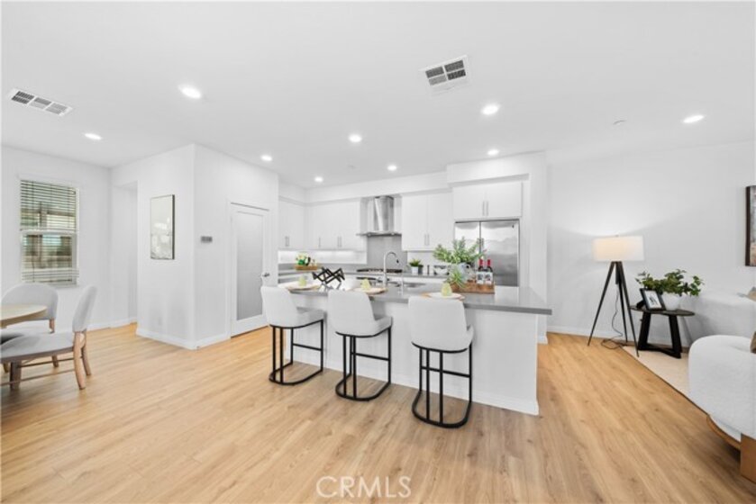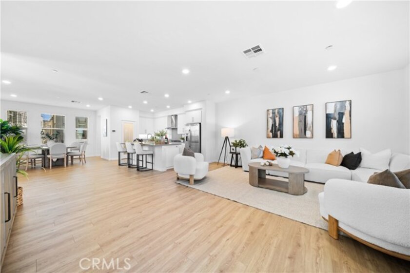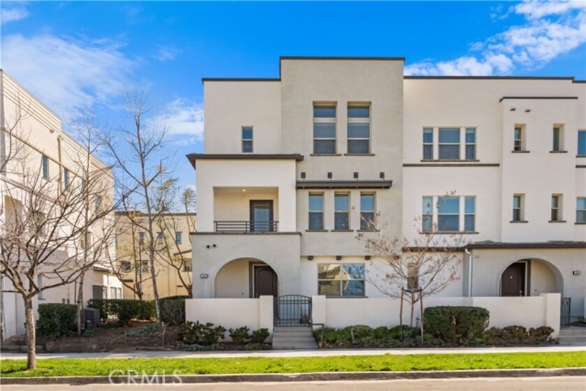 CORNER LOT, FIRST FLOOR SUITE, WALKING TO PARK AND SCHOOL! COVERED DECK & FRONT YARD!! This Stunning three-story townhome located in the vibrant Great Park community of Irvine. With 2,075 square feet of thoughtfully designed space, offers three bedrooms and three and a half bathrooms, The first-floor suite provides flexibility for guests, a home office, or multi-generational living, while direct garage access adds convenience. Upstairs, the open-concept main level is bathed in natural light, seamlessly connecting the living, dining, and kitchen areas. The gourmet kitchen features Special Island, quartz countertops, stainless steel appliances, a walk-in pantry. On the top floor, the primary suite is a true retreat, offering a walk-in closet, a luxurious ensuite bath, and expansive views of the Great Park hot air balloon. A secondary bedroom with its own private bath ensures comfort for all. Enjoy outdoor living with a covered deck and a charming front yard. Residents have access to resort-style pools, scenic trails, sport courts and clubhouse. Located in the top-rated Irvine Unified School District, this home is minutes from parks, shopping, and major freeways.