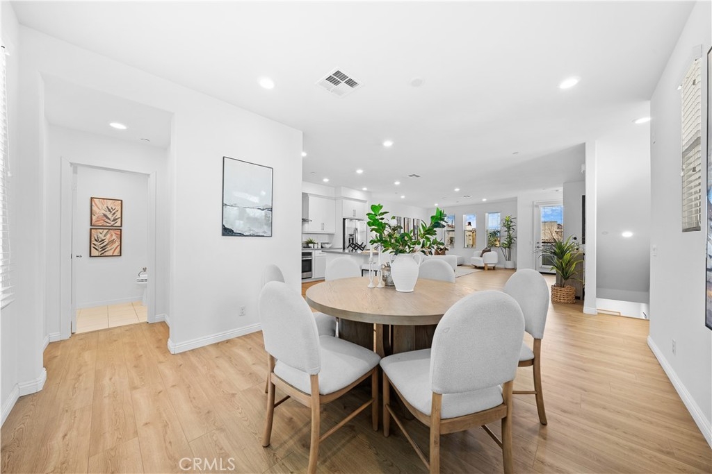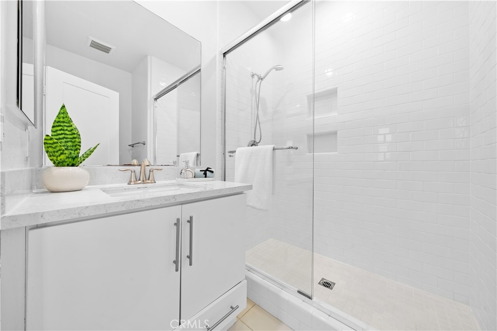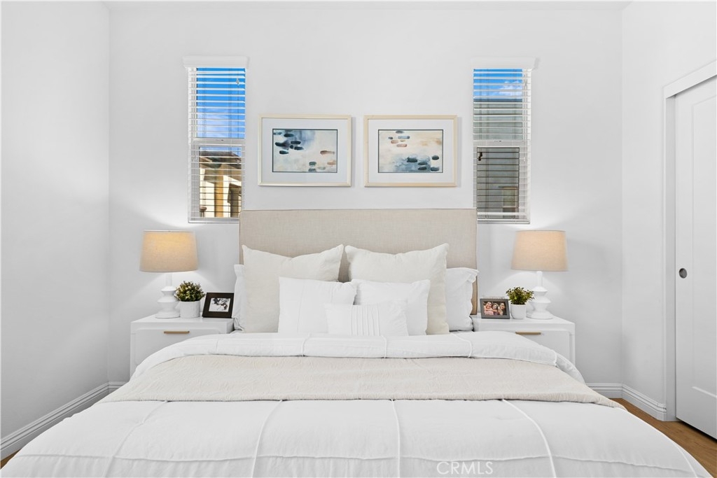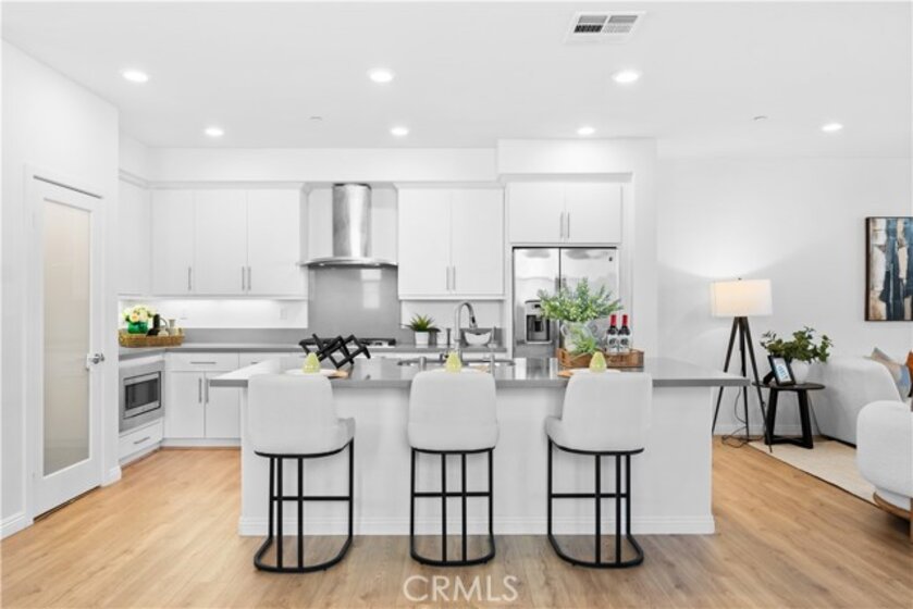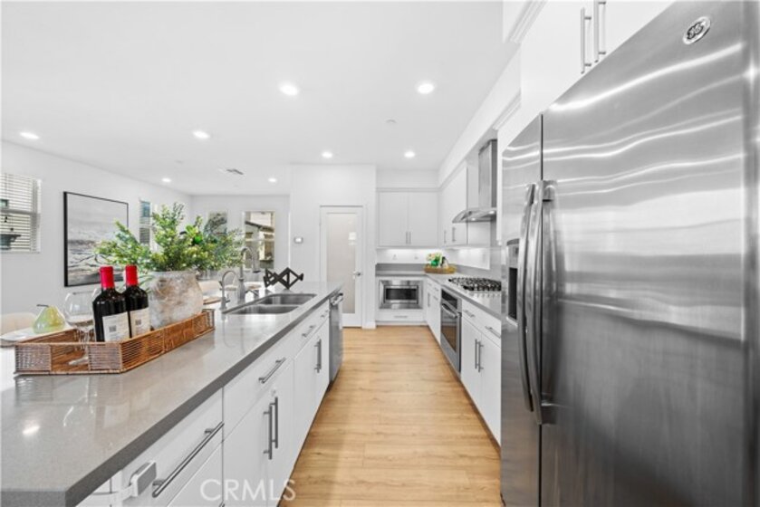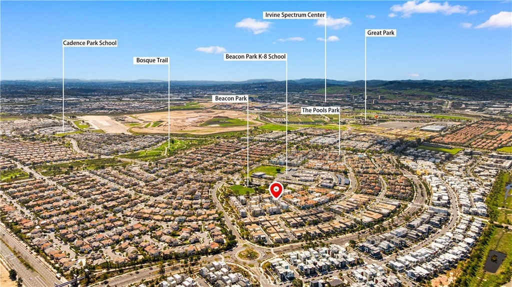 CORNER LOT, FIRST FLOOR SUITE, WALKING TO PARK AND SCHOOL! COVERED DECK & FRONT YARD!! This Stunning three-story townhome located in the vibrant Great Park community of Irvine. With 2,075 square feet of thoughtfully designed space, offers three bedrooms and three and a half bathrooms, The first-floor suite provides flexibility for guests, a home office, or multi-generational living, while direct garage access adds convenience. Upstairs, the open-concept main level is bathed in natural light, seamlessly connecting the living, dining, and kitchen areas. The gourmet kitchen features Special Island, quartz countertops, stainless steel appliances, a walk-in pantry. On the top floor, the primary suite is a true retreat, offering a walk-in closet, a luxurious ensuite bath, and expansive views of the Great Park hot air balloon. A secondary bedroom with its own private bath ensures comfort for all. Enjoy outdoor living with a covered deck and a charming front yard. Residents have access to resort-style pools, scenic trails, sport courts and clubhouse. Located in the top-rated Irvine Unified School District, this home is minutes from parks, shopping, and major freeways.