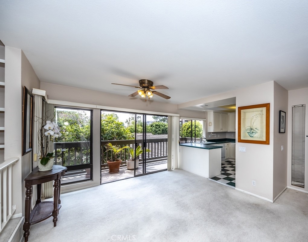 SPECTACULAR PANORAMIC VIEWS OF PARK, GREENBELT AND TREES FROM ALL THREE DECKS! Corner lot, one-level penthouse home with no one above has soaring cathedral ceilings, open floor plan and large windows everywhere with lots of natural light. Expansive great room has no walls between kitchen, dining & living rooms. Home has a master bedroom suite with private outdoor deck and gorgeous views, a front bedroom, and a den (partially open to living room) which is commonly converted to a third bedroom or used as an office with wonderful park view. Kitchen window & dining room sliding glass door open to one of three outdoor decks, to relax, dine & entertain surrounded by nature. Living room with upgraded fireplace has wide-open views of the park from multiple windows & its own outdoor deck. With the windows open to the breeze and green in all directions, you will feel both inspiration and tranquility. Within highly acclaimed Irvine School District & University High. 2-car garage & street parking. Just steps to community resort-style pool and spa. Ideally located near UCI, William Mason Park, John Wayne Airport, Newport Beach, Fashion Island & walking distance to shops & entertainment. Water, trash and all exterior maintenance are included in association dues. Do not miss this opportunity to make this home your own! See 3D Virtual Walkthrough at https://my.matterport.com/show/?m=b4eCKzwpC5a&mls=1