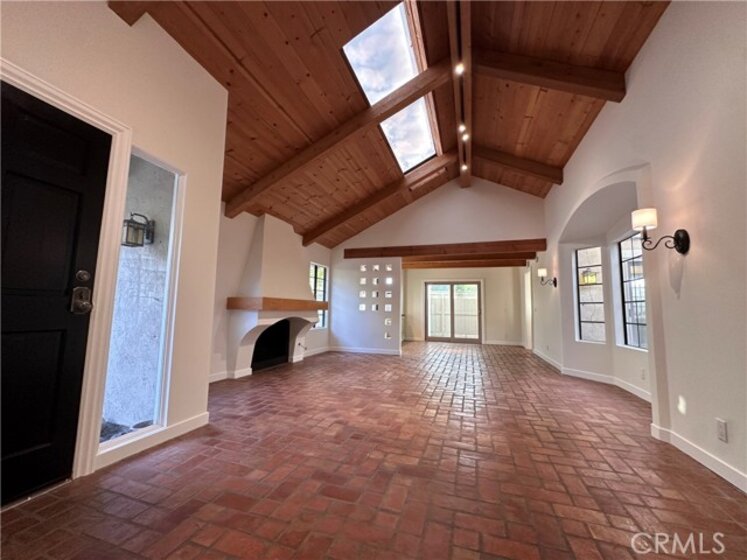 In the heart of Irvine’s famed Woodbridge community, in the boutique neighborhood known as The Grove, and with a backyard gate that opens directly to Ashford Park (with its pool, spas, sport courts, play equipment, and green space) is this SINGLE STORY end-unit home that combines convenience, privacy, and character. Inside, this isn’t a cookie-cutter tract house! Architectural details set it apart — from arched passageways and plank-and-beam ceilings, to a distinctive fireplace with warm wood accents and low-maintenance brick paver flooring playfully sprinkled with colorful tile inlays. Natural light pours in through skylights, while a wraparound yard — designed to feel like an atrium — is visible from the living room, kitchen, and primary suite. The result is a super private outdoor retreat that brings the beauty of the outdoors in, perfect for entertaining or simply relaxing at home. The primary bedroom has an ensuite, freshly remodeled bath featuring dual vanities, quartz counters, and brand-new cabinetry as well as a huge walk-in closet. The secondary bath was updated with the same finishes for a consistent, stylish look. A versatile den space offers an ideal extra area, which could function as a home office, fitness or reading room, or enclose it into a true third bedroom. Fresh paint and new bedroom carpet give the home a bright, welcoming feel right away, while a direct-access 2-car garage and gated front courtyard add everyday convenience and security. As part of Woodbridge, residents enjoy access to two landmark lakes, over 20 pools and spas, tennis, playgrounds, and miles of trails — plus award-winning Irvine schools. With all these great details on a single story, this rare Woodbridge find combines thoughtful updates, timeless character, and one of the most desirable locations in Irvine into a home you can enjoy for the rest of your life!