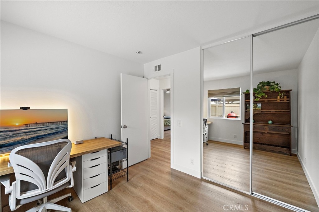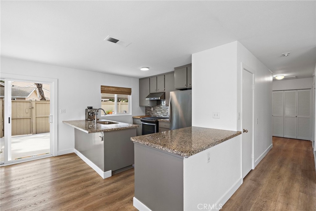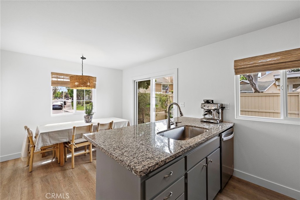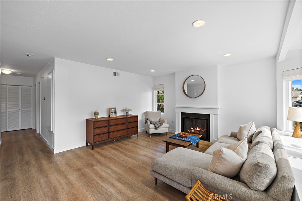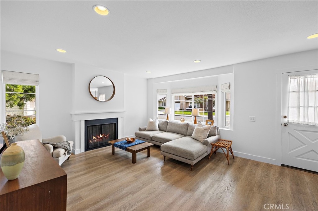 Ideally located, flawlessly designed and pristine in every way! Welcome to 191 Rockwood within the highly coveted community of Woodbridge. This premium single story end-unit home encapsulates all of the style and amenities sought out by even the most discerning buyers. Upon entering, you’ll notice the abundance of natural light shining in on the open concept family room, kitchen and dining space. The entire home has been recently upgraded with vinyl wood flooring, brand new paint and vinyl windows throughout. The family room offers a gas burning fireplace and large front bay window, while the adjacent kitchen includes newly painted cabinetry, granite counters, glass backsplash, breakfast counter seating, and stainless appliances, including newly upgraded fridge, dishwasher and stovetop hood. The spacious primary bedroom boasts custom wall sconce lighting, custom closet organizers and a desk space. The primary bath includes a new dual sink vanity, new light fixtures and a remodeled shower/tub. The two secondary bedrooms offer mirrored sliding closet doors and share a fully remodeled secondary bathroom, also with dual vanity. Other interior features include new Roman shade window coverings throughout, indoor washer and dryer closet, large hallway linen closet and new ceiling fans. Just outside the sliding kitchen door is the large enclosed side yard, ideal for kids to play or hosting weekend BBQs. The private carport is conveniently located just outside the side yard gate. The newly installed AC, heater and Nest thermometer ensure interior comfort for several years to come. A short 2 block walk from the home is the Blue Lake Swim Club, which recently underwent a $4+ million renovation. The park adjacent to the swim club includes expansive grass areas, basketball half court and playground. In addition, Woodbridge offers award winning schools, and the Village Association offers residents amenities such as two landmark lakes, fishing, paddle and row boats, sand-bottom beach lagoons, over twenty pools, volleyball, tennis and pickleball. Come see for yourself!!!