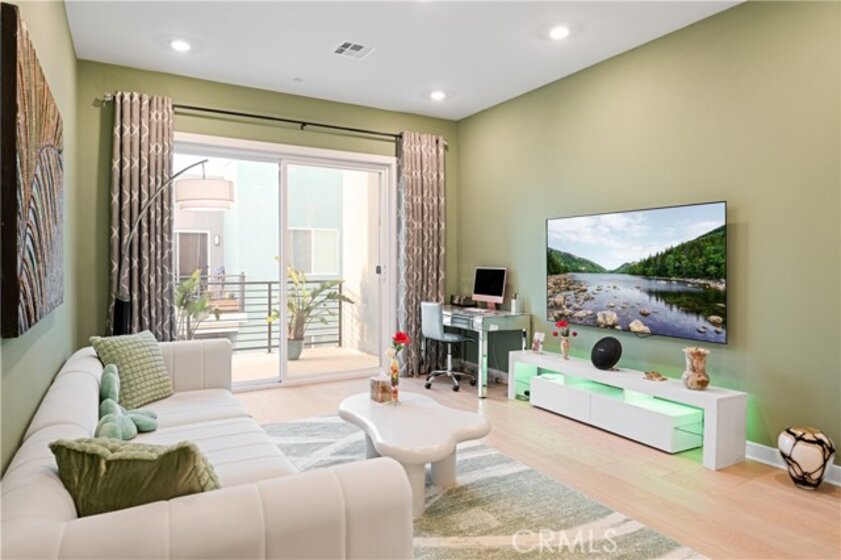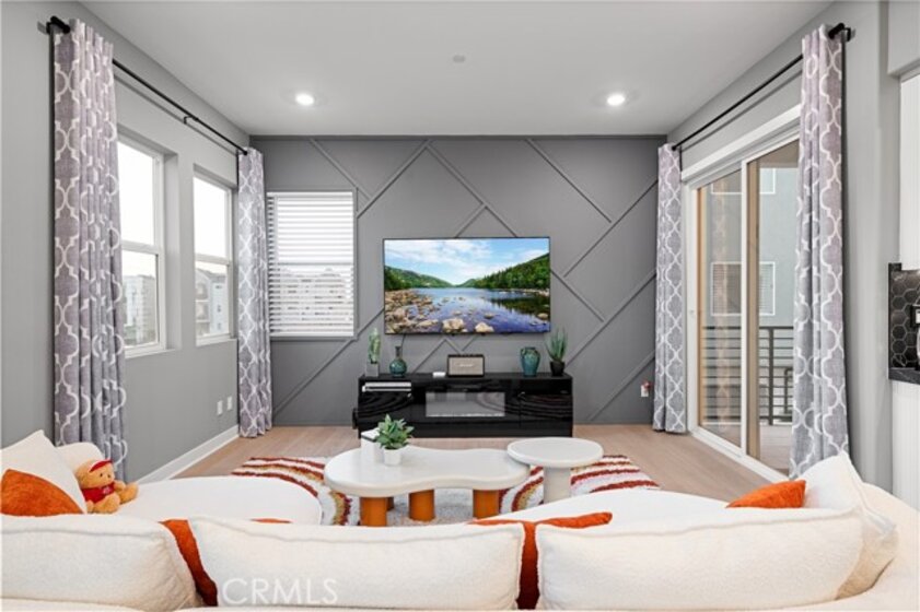 Welcome to Your Dream Home in the Solis Park Neighborhood of Great Park! Discover this stunning 3-bedroom, 3.5-bathroom condo with an additional loft, offering a flexible 4th-bedroom option. Boasting 2,647 sq. ft. of living space, this 3-level home combines modern design with thoughtful functionality. Step inside to find beautifully painted walls that add character and charm to every room. The bright and airy interior is bathed in natural light from abundant windows, creating a warm and inviting ambiance. On the second floor, you’ll find an open concept kitchen and family room, perfect for entertaining. The kitchen features a large island with seating, stainless steel appliances, and direct access to a private balcony. This floor also includes a bedroom and full bathroom, offering convenience and versatility. The third floor is home to the luxurious primary suite, complete with a spacious en-suite bathroom, walk-in closet, and serene ambiance. Adjacent to the oversized loft, ideal as a fourth bedroom or additional living space, you’ll find another bedroom, full bathroom, and a convenient laundry area. Additional highlights include an oversized garage with a workshop area, a whole-house water filtration system, and fully paid solar panels, providing modern sustainability and added value. Residents of Solis Park enjoy access to an array of resort-style amenities, including a swimming pool, spa, clubhouse, playgrounds, picnic areas, tennis courts, parks, and scenic walking and biking trails. This home is ideally located near top-rated schools, major freeways, and popular destinations like Irvine Spectrum and John Wayne Airport. Don’t miss your chance to call this exceptional property your home—schedule a viewing today!