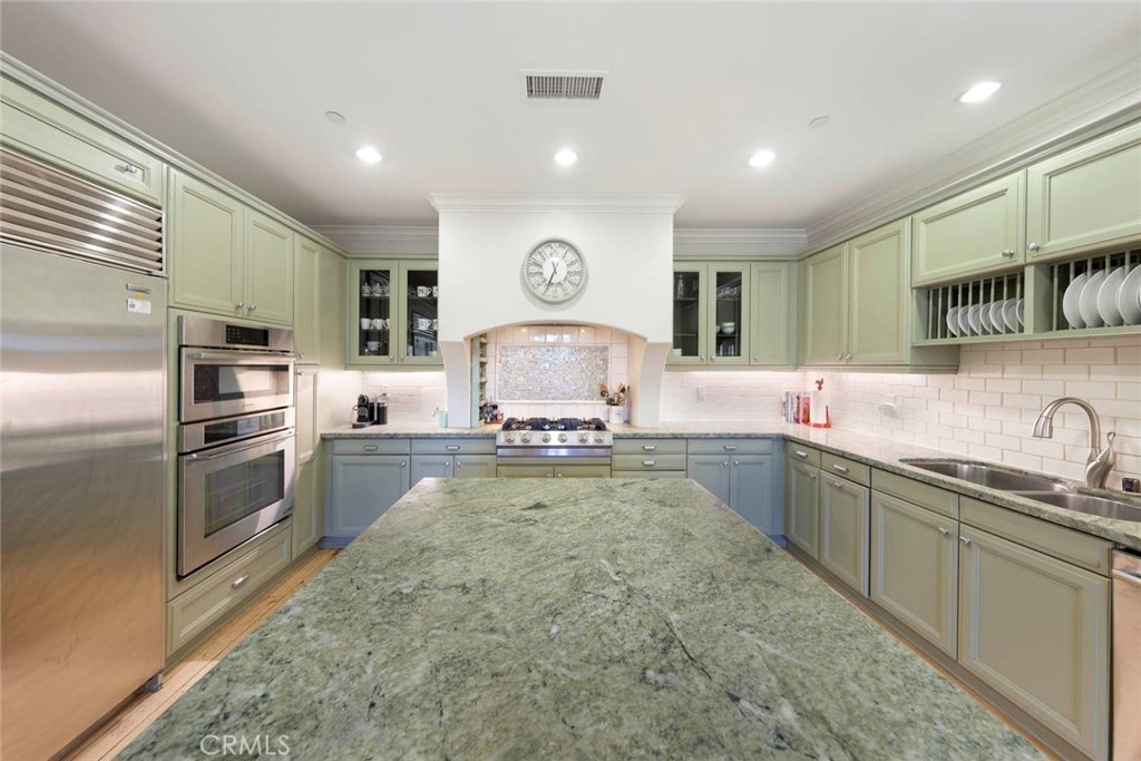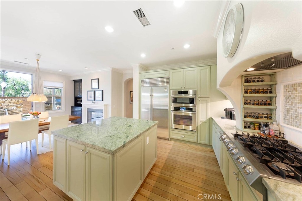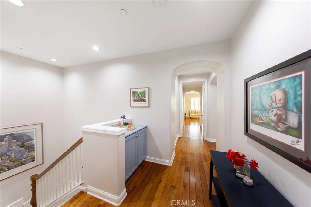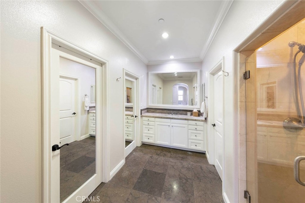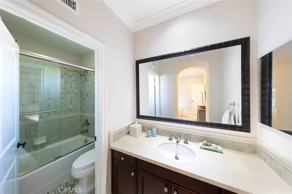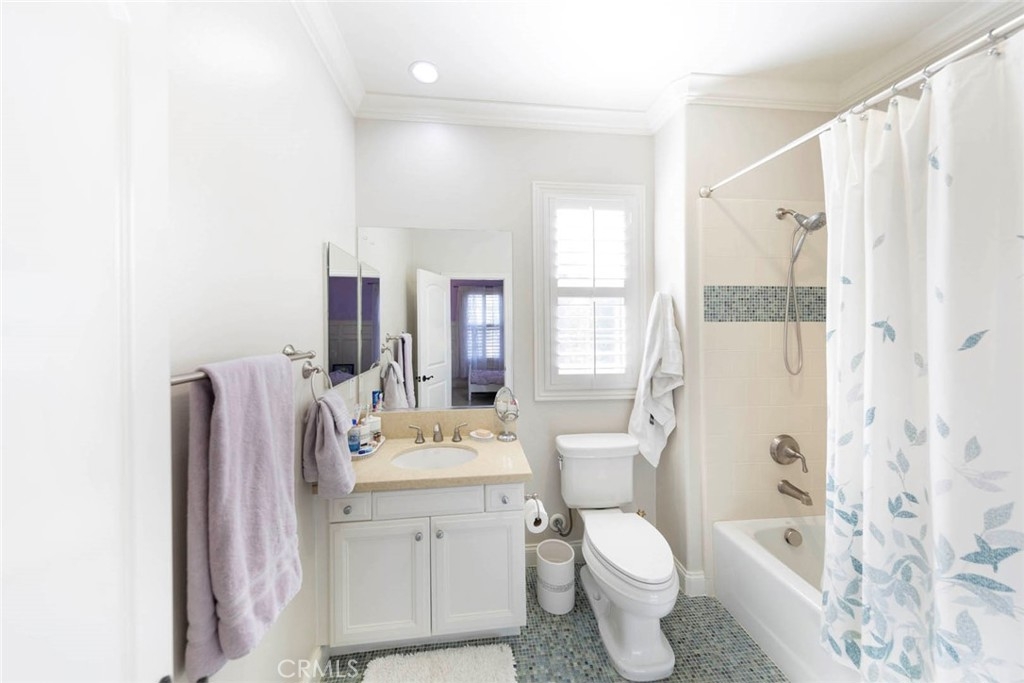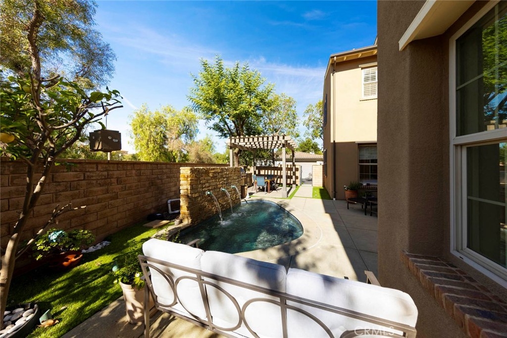 Discover refined living in this beautifully upgraded Irvine residence. Offering over 2,600 sq. ft. of living space, this 4-bedroom, 4.5-bath home features freshly painted interiors, resurfaced cabinetry, new carpet, and refinished hardwood floors—creating a warm, cohesive atmosphere from the moment you enter. The large, sunny side patio is an entertainer’s dream, complete with an in-ground hot tub with fountain, outdoor kitchen, and shaded dining area perfect for al fresco gatherings. Inside, the gourmet kitchen boasts a spacious center island, quartz countertops, custom cabinetry, walk-in pantry, added spice cabinet, custom dry bar, Sub-Zero refrigerator, Bosch double oven, and convenient direct access to the side patio and main living areas. A downstairs bedroom with en-suite bath, a guest powder room, and direct access to the oversized two-car garage with epoxy flooring and built-in storage enhancing the home’s functionality. Upstairs, an open loft/office provides flexible living space, complemented by a well-appointed laundry room. The luxurious primary suite includes a private balcony overlooking Lomas Valley Park, white wainscoting, plantation shutters, and a unique His-and-Hers closet and bathroom layout featuring a soaking tub, Roman shower, and dual vanities. Two additional upstairs bedrooms each offer their own en-suite bathroom and walk-in closet. Additional upgrades include an epoxy-finished garage with ample built-in cabinetry for storage or parking. Located in a serene, park-like setting with plentiful guest parking, Lomas Park Community amenities include Clubhouse with a Jr. Olympic-sized pool, half basketball court, and playground—making this home a must-see in Portola Springs.