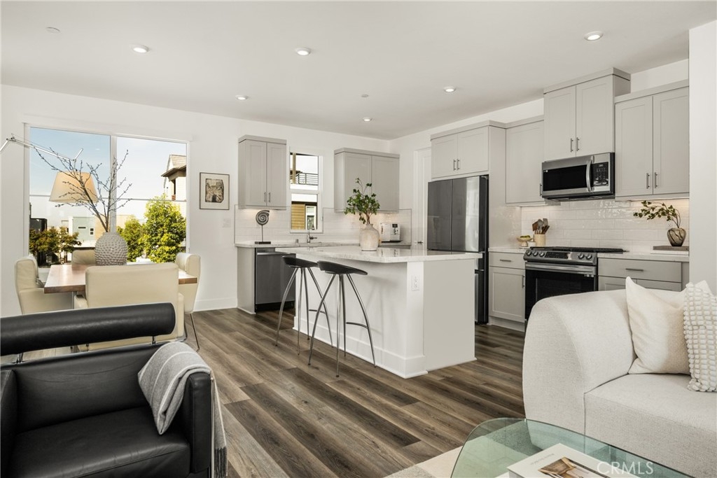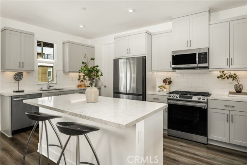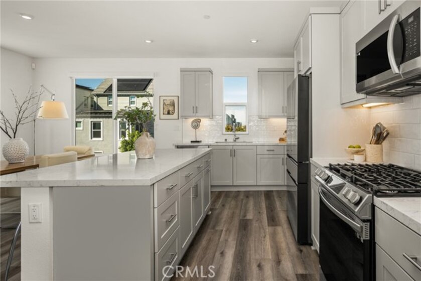 VIEWS!! VIEWS!! VIEWS!! Stunning turnkey home with BREATHTAKING VIEWS in the highly sought after Solis Park community of Great Park. This detached residence enjoys a Prime Location with no homes in front or behind, offering rare Privacy and Unobstructed Views of protected green space. From the moment you arrive, you are welcomed by the Charming Curb Appeal and a gated entry that leads to a spacious front porch lined with lemon trees. Inside, the thoughtfully designed floor plan offers exceptional versatility, including a Main Level Guest Suite complete with a full en suite bathroom and walk-in closet. Ideal for multigenerational living or added privacy, this suite also has direct access to a beautifully landscaped yard with pavers and lush trees. The Second Level features an expansive, light filled Great Room with soaring ceilings and walls of windows, capturing stunning VIEWS of open grassland and the surrounding neighborhood. An Oversized Balcony extends the living space for INDOOR/OUTDOOR living and provides the perfect place to relax and unwind. The Chef’s Kitchen is an entertainer’s dream, showcasing upgraded light gray European cabinetry, Quartz countertops, a shimmery white tile backsplash, stainless steel appliances, and a center kitchen island that opens seamlessly to the Dining Area and Great Room. A convenient powder room is also located on this level for guests. The Third Level offers 3 additional spacious bedrooms, including a Luxurious Primary Suite with Serene Views, a spa inspired primary bathroom with dual vanities and an oversized shower, and a generous walk-in closet. 2 secondary bedrooms share an upgraded guest bathroom with dual vanities. A dedicated laundry room is conveniently located on this level. Additional highlights include luxury vinyl flooring throughout, a direct access 2-car garage, an additional guest parking space next to the garage, and ample guest parking nearby. Green Features include 11 Owned Solar Panels, pre-wired for EV Charging, a tankless water heater, and a Multi-Zone HVAC System. Zoned for Award Winning Irvine Schools and within walking distance to Solis Park School, Portola High School, and resort style HOA pools and parks. Just minutes from Woodbury Shopping Center with Ralphs, Trader Joe’s, and a variety of Dining Options. This Model-Like home presents a rare opportunity at this price point!