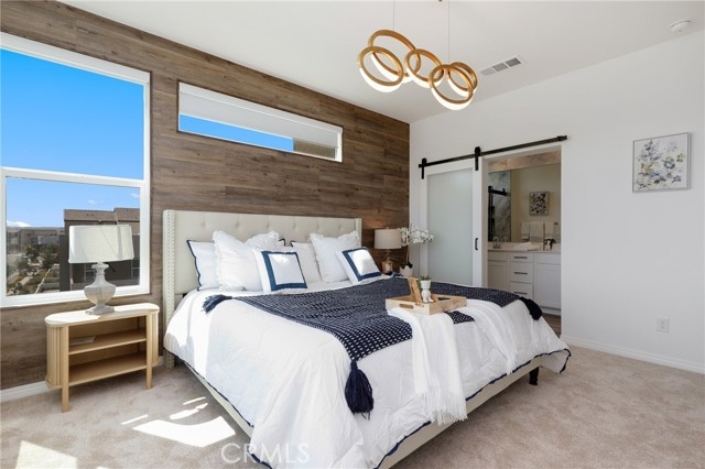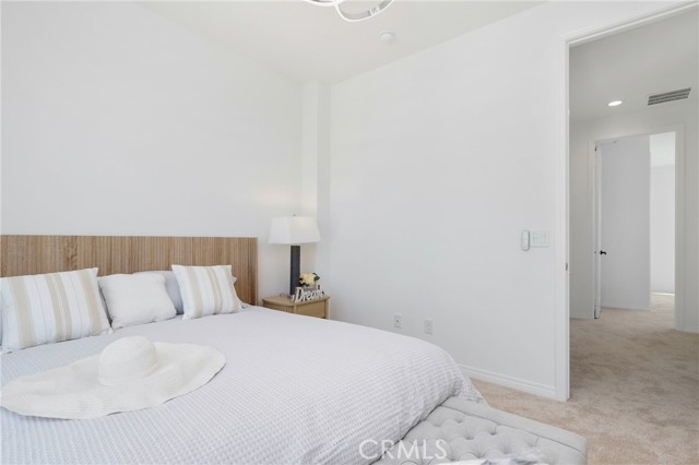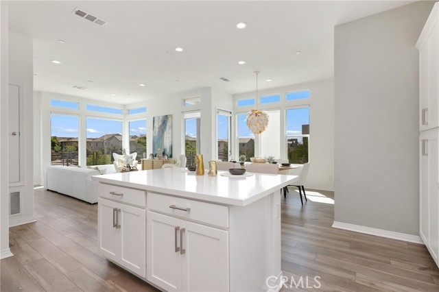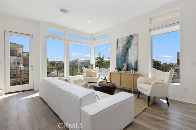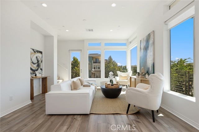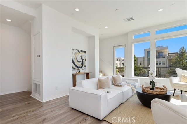 Built in 2022, this remarkable corner residence harmonizes modern design, thoughtful functionality, and refined comfort. Bathed in natural light from its expansive windows and ideal corner positioning, this home radiates warmth, openness, and timeless elegance. Upon entry, you’re greeted by a welcoming foyer that features a small closet, direct garage access, and a versatile office/workshop—a perfect small space for remote work or personal projects. The staircase to the main living level sets a sophisticated tone from the very start. The second floor serves as the heart of the home, featuring an open-concept kitchen, dinning, and living area adorned with recessed lighting, remote-control curtains, and large windows that fill the home with abundant natural light. The chef’s kitchen is beautifully appointed with a double-door refrigerator and freezer, stand-alone dual ovens, a built-in stovetop, and custom cabinetry, offering the ideal combination of style and convenience. Seamlessly extending your living space, the wrap-around patio, accessible from the second floor, creates a tranquil indoor-outdoor experience perfect for entertaining or unwinding in the California sunshine. The third floor is dedicated to family comfort and privacy, featuring three spacious bedrooms, each enhanced with a modern designer light fixture that complements the room’s elegance and character. The primary suite stands as a luxurious retreat, complete with a custom-designed primary bathroom showcasing dual showers and exquisite finishes, along with a walk-in closet featuring custom-built cabinetry for superior organization and beauty. A full laundry room on third floor with washer, dryer, and built-in cabinetry adds ease and efficiency to daily living. Freshly updated with new paint and plush carpeting, this home reflects meticulous care and true pride of ownership. Ideally located within walking distance of Solis Park K–8 School and Portola High School, it offers the perfect balance of elegance, convenience, and family-oriented design. This 2022-built residence is a rare gem—where modern sophistication, natural light, and everyday comfort come together to create a home you’ll love coming back to every day.