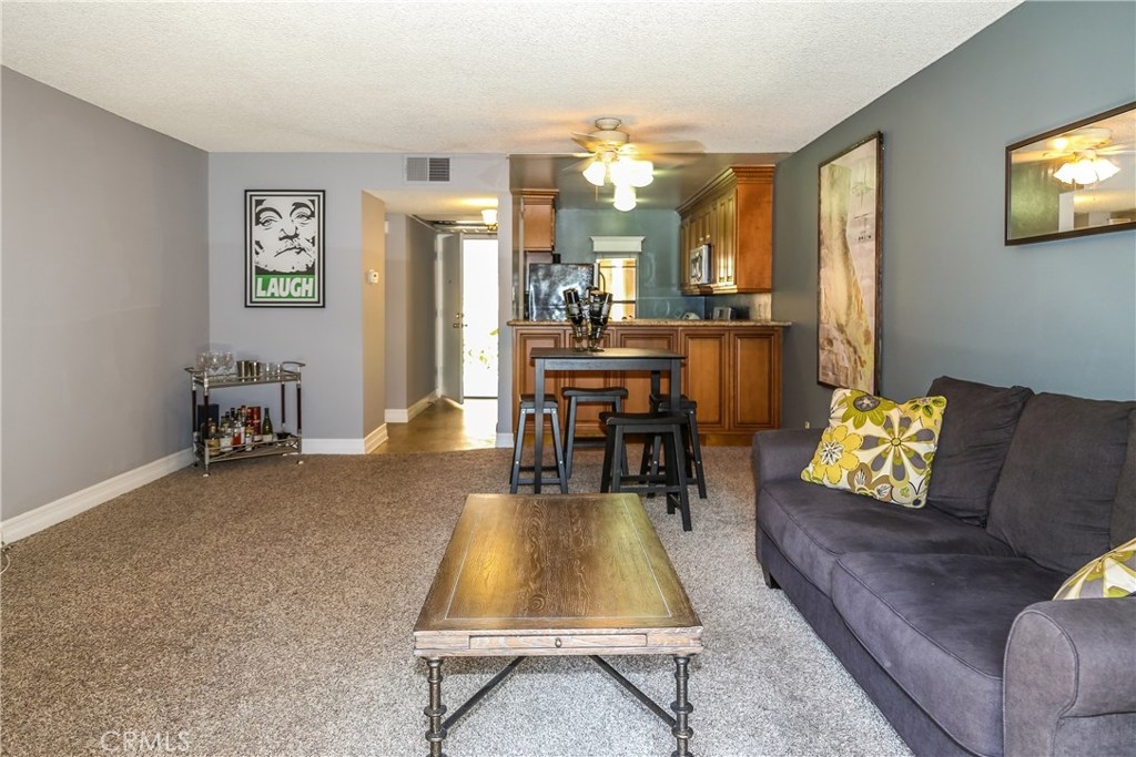 Prime downstairs unit..no stairs...on the water/streams with an additional view of the pool. This home has an updated kitchen with granite counter tops, newer cabinets, stainless steel appliances and a breakfast bar overlooking the spacious living room. The bath has been remodeled with a brand new vanity, re-glazed tub and fixtures. Brand new A/C. Easy access to parks, tons of recreational facilities, the college and a quick jump to the freeway. Great central location to all that OC has to offer.