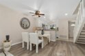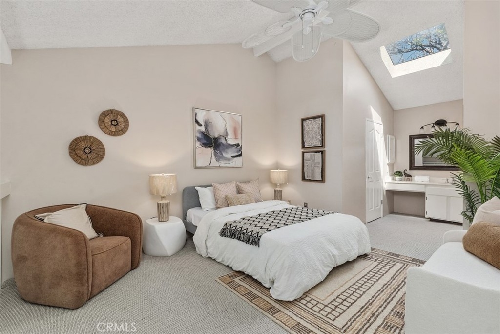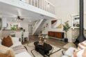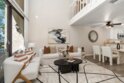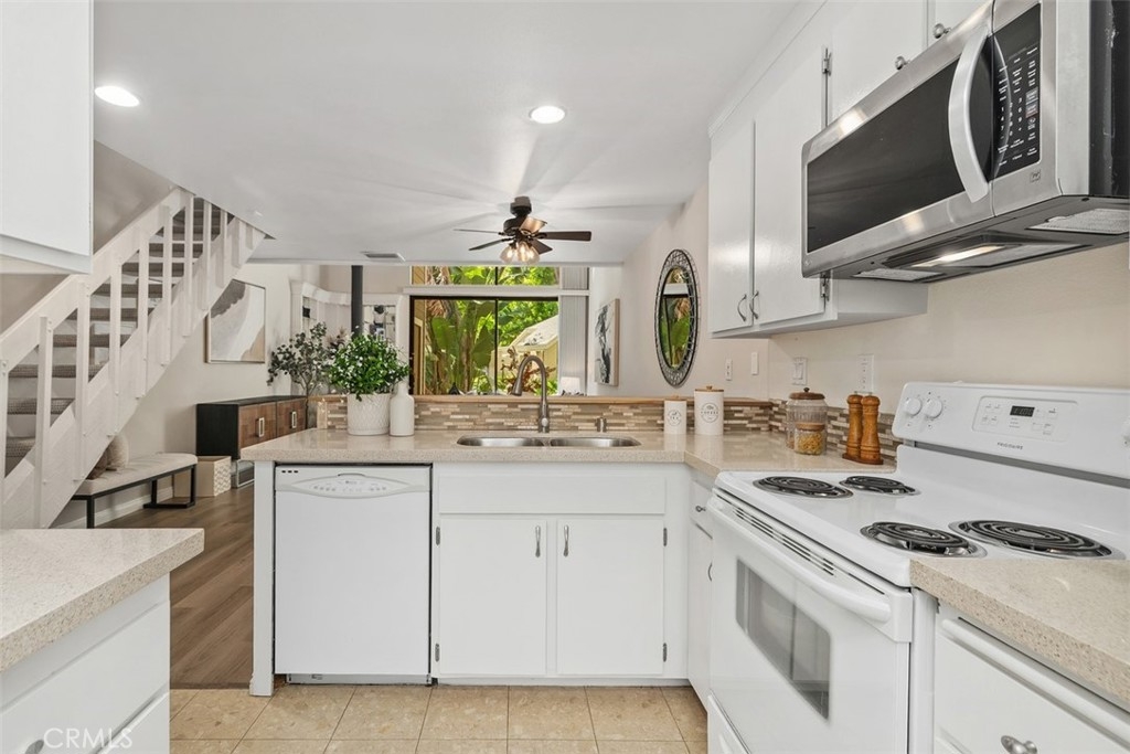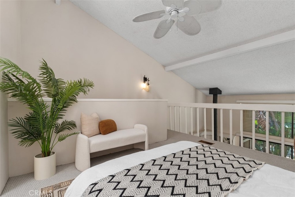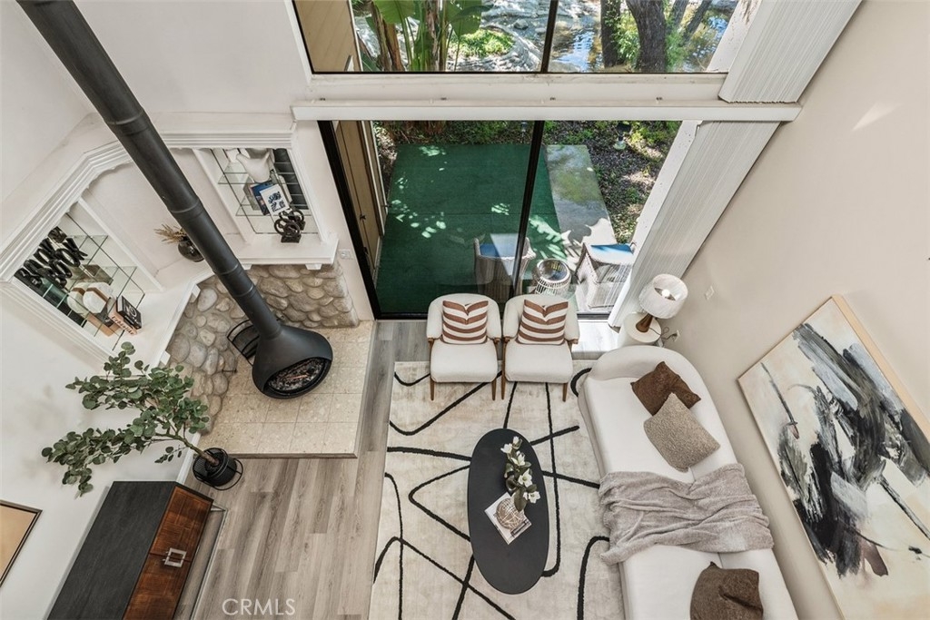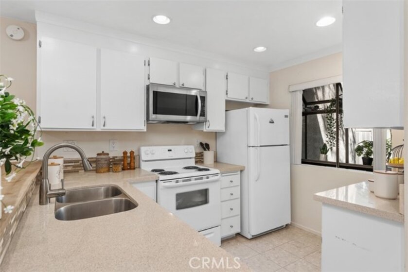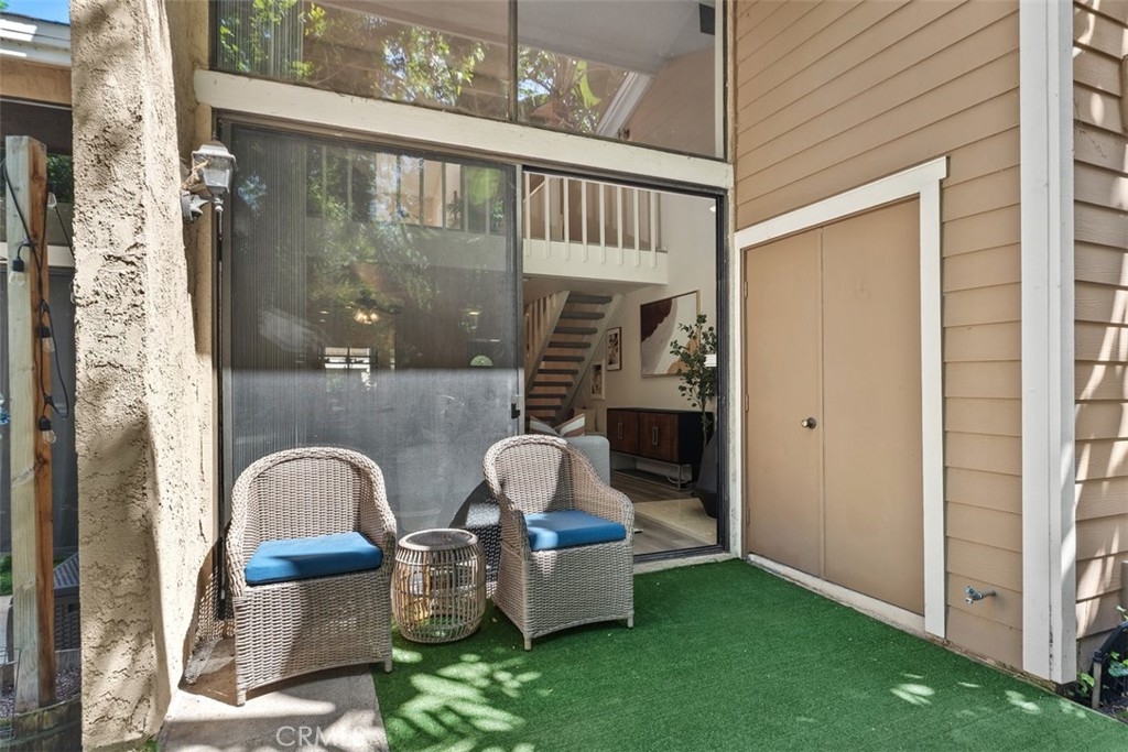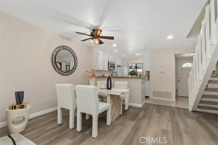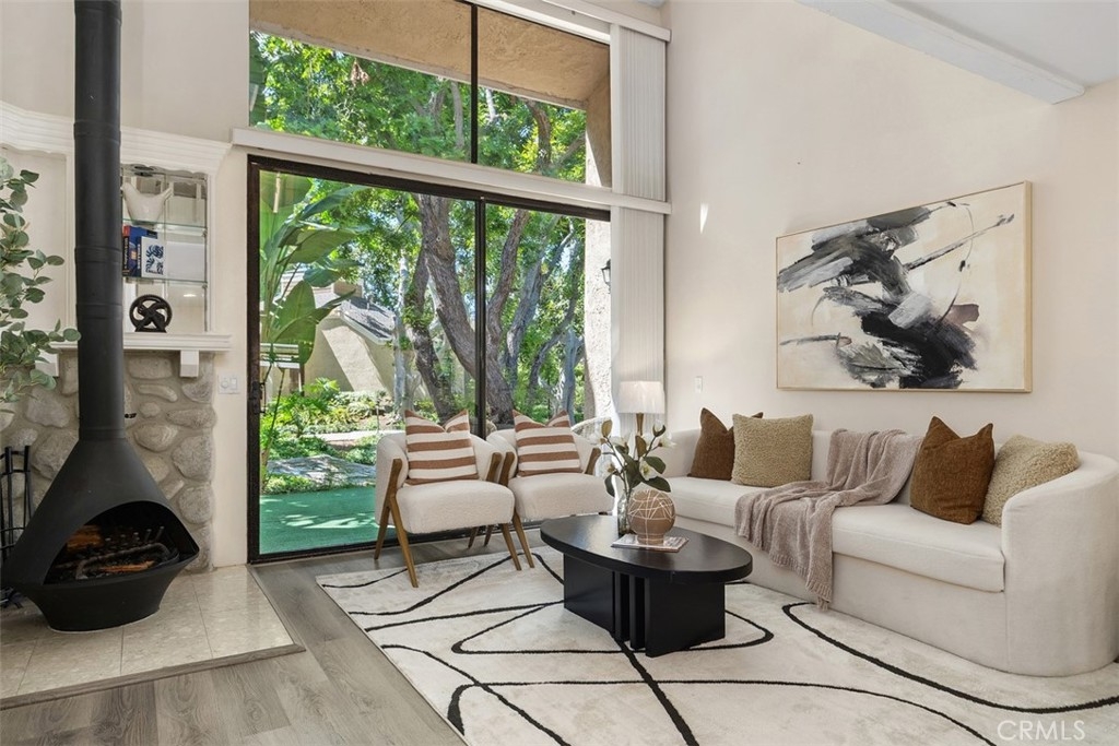 This turnkey loft-style home is a rare opportunity, featuring no neighbors above or below, a highly sought-after layout that offers exceptional privacy and comfort. Upon entering the front door, you’re welcomed into an open-concept living space filled with natural light, enhanced by soaring ceilings and large windows. The wood-burning fireplace in the living room creates a warm and inviting atmosphere. Upgrades include vinyl flooring and new carpet on the stairs and upstairs bedroom in 2023, adding a fresh and modern feel throughout. Additional features include recessed lighting, stone countertops, central A/C and heat, and an included washer and dryer conveniently located in a closet just off the patio. Upstairs, the spacious loft-style bedroom offers a generous walk-in closet, vanity area, and a shower-tub combination. Step outside to your private patio, where you can relax and enjoy peaceful views of lush greenery and tranquil streams, bringing a natural backdrop to everyday living. Located within an award-winning school district and just minutes from shopping, dining, Tustin Marketplace, and Irvine Spectrum, this home offers both convenience and lifestyle.The community features resort-style amenities including pools, tennis courts, and scenic streams throughout, with HOA dues covering water and trash for added ease. A rare blend of privacy, comfort, and convenience, this home truly speaks for itself.