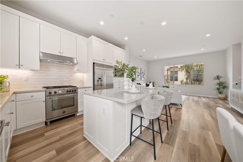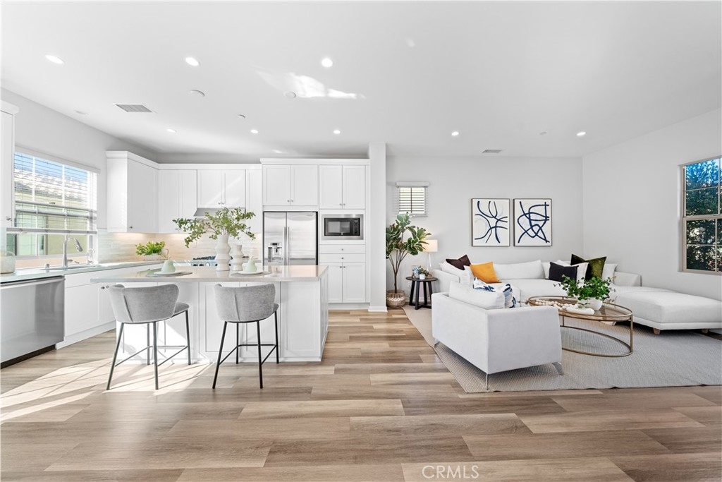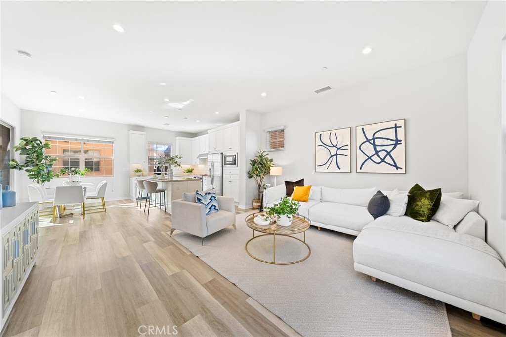 Welcome to this beautifully upgraded tri-level detached residence with no shared walls, nestled in the highly sought-after Portola Springs community of Irvine. Designed for modern living, this 3 bedroom, 3.5 bath home offers a bright and airy open floor plan with thoughtful separation of living spaces. The main living level showcases a sleek, contemporary kitchen featuring quartz countertops, stainless steel appliances, crisp white cabinetry, and a generous center island, seamlessly flowing into the dining and living areas, perfect for both entertaining and everyday comfort. Large windows flood the space with natural light, enhancing the clean lines and warm finishes throughout. One bedroom with an ensuite bath on the first floor provides flexibility for guests or a private home office, while the upper level hosts a spacious primary suite complete with a walk-in closet, and an second bedroom suite, plus a conveniently located laundry area on the same floor. Additional highlights include central AC, recessed lighting, spacious balcony and an attached two-car garage with direct access. As a resident of Portola Springs, enjoy access to resort-style amenities, including pools, parks, playgrounds, sports courts, and miles of scenic hiking and biking trails. Located within the award-winning Irvine Unified School District and just minutes from shopping, dining, Great Park, and major freeways, this home offers the perfect blend of privacy, style, and convenience. A rare opportunity to own a move-in-ready detached home in one of Irvine’s premier master-planned communities.