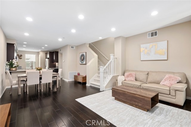 Welcome to your dream home at 207 Native Spring, located in the highly desirable Portola Springs Village of Irvine! Nestled against the scenic foothills, this luxurious Willow Residence offers 2 spacious master bedrooms and 2.5 baths across nearly 1,400 sqft of beautifully upgraded living space. Situated on a premium lot with no neighbors in front, this home enjoys a quiet, tree-lined neighborhood setting complete with charming street lamps. Step inside to discover hardwood flooring, high ceilings, crown molding, and recessed lighting with dimmers throughout. The chef-inspired kitchen features a walk-in layout, granite countertops, stainless steel appliances including a 6-burner stove, and lots of cabinet storage—perfect for preparing gourmet meals. The open-concept living area flows effortlessly to a private balcony, ideal for enjoying morning coffee or evening relaxation with peaceful views. Upstairs, both bedrooms offer private en-suite bathrooms with large closets; the primary suite includes a dual vanity for added convenience. Additional highlights include custom designer paint, custom window coverings, an upstairs laundry, and an oversized two-car tandem garage. Enjoy resort-style living with community amenities such as a private pool, spa, clubhouse, playgrounds, and open green spaces perfect for recreation and socializing. Feeds into the award-winning Irvine Unified School District—including Portola Springs Elementary, Jeffrey Trail Middle, and Portola High School. Live in Luxury!