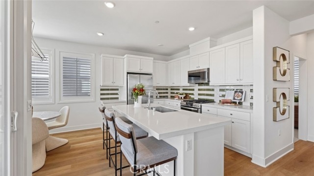 Beautiful and newly constructed detached home in the desirable Great Park Neighborhoods. This 3 bedroom and 3 bathroom home features a versatile den on 1st floor and private 2 car garage. The second level showcases an open-concept kitchen, dining, and living area with a balcony. Beyond the kitchen is bedroom and spacious bathroom. The third level welcomes an expansive master bedroom, laundry room, and an additional bed and bath. home features a spacious and privately enclosed front patio perfect for barbecuing.