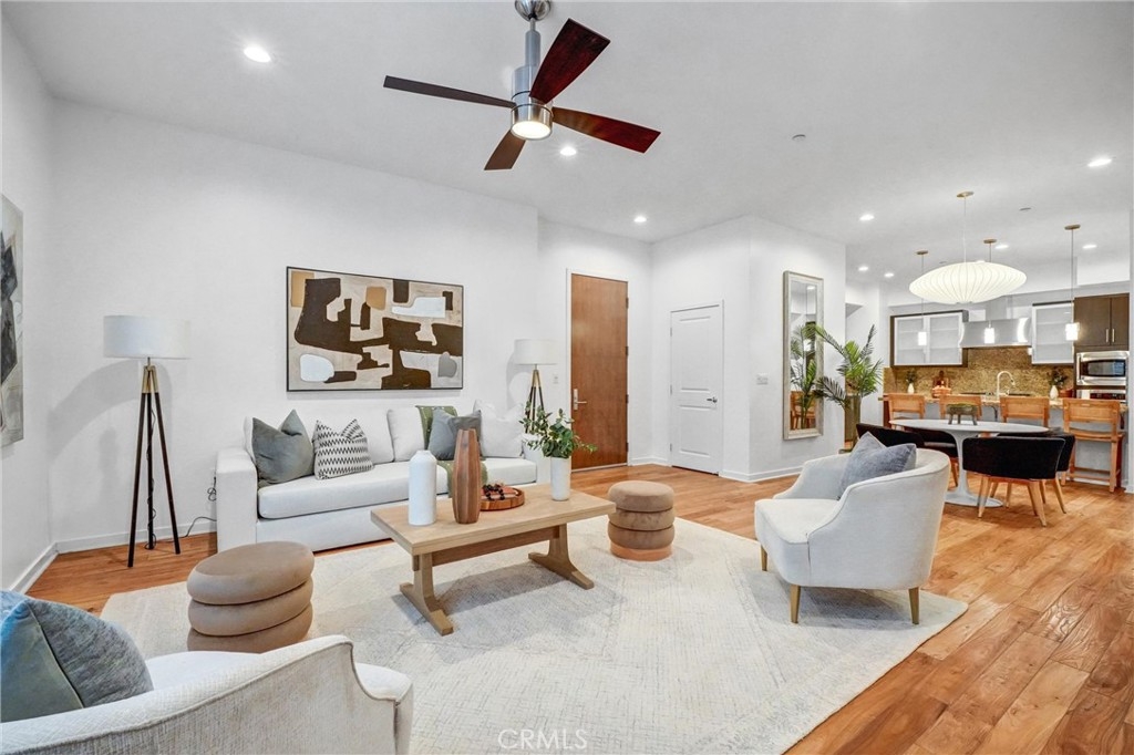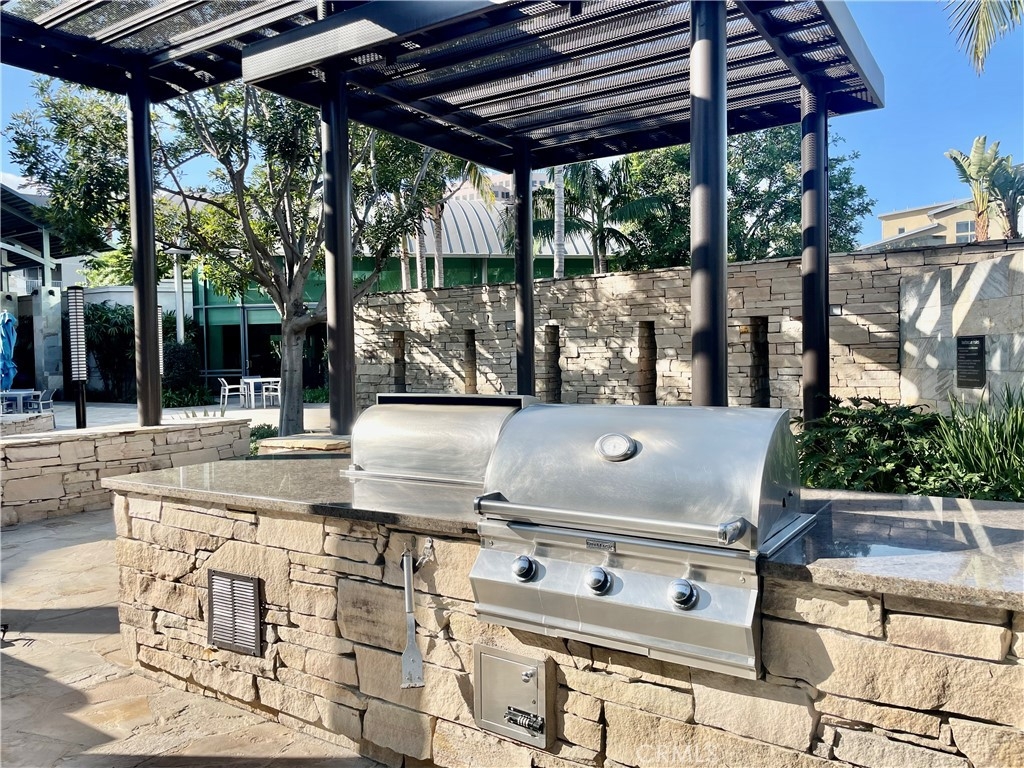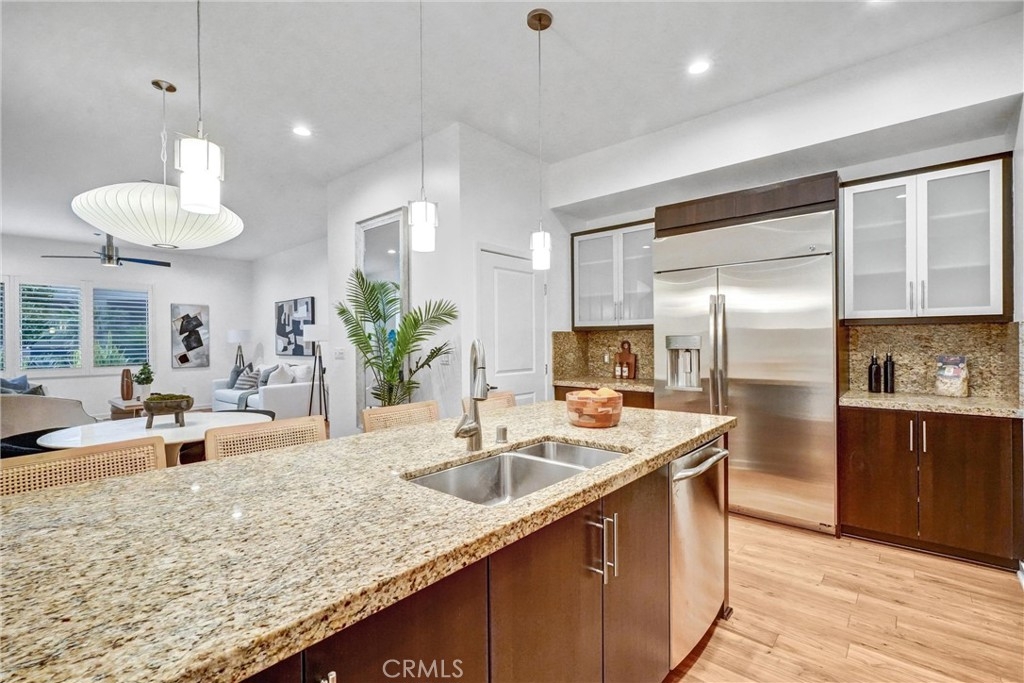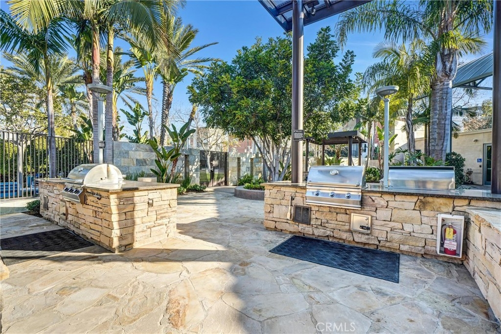 Prestigious Lifestyle of Belvedere Residence within Central Park West, designed w luxury & convenience in mind. This nicely single Level Condo located on the 1st floor w high-ceilings, recessed lighting, wood floors, plantation shutters through-out, Casablanca ceiling fans, laundry area, & ample storage. Master suite w direct access to patio. Master bath includes dual sinks, granite countertops, separate tub, shower w glass enclosure & walk-in closet w organizers. Huge full guest bathroom. Gourmet kitchen opens to dining & living room. It offers center island w breakfast bar, granite counters, stainless steel appliances, modernly designed cabinets w glass doors, & walk-in pantry. Open floor plan offers perfect space for entertaining. Directly across the street the resort like amenities, gym & fitness facilities, saline pool & spa, community event center, outdoor sitting areas w fireplaces for social gatherings, guest lounges w bars, barbecue areas, & much more. Amenities also include tot lot, Pickleball & basketball Courts, & pet waste station. Inviting lobby entrance, access-controlled building, & two assigned parking spaces in the gated subterranean parking structure 124/125, & a private storage. Live, work & play in what has become the hottest lifestyle location in OC. Centralized location, off of I-405 to Jamboree, only minutes away from John Wayne Airport, UC Irvine, South Coast Plaza, Fashion Island, 73 toll road, & Ocean!