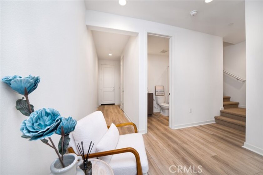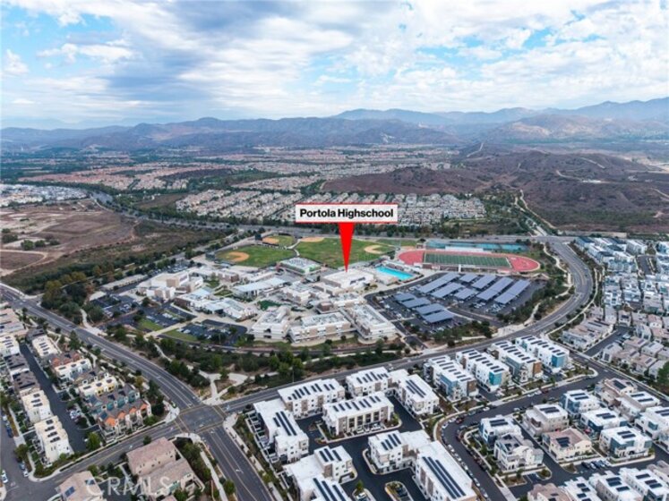 Located in the Solis Park community of Irvine, this well-maintained residence offers approximately 1,941 square feet of living space with four bedrooms and four bathrooms arranged across a thoughtfully designed multi-level floor plan. The interior features wood-style flooring, neutral finishes, recessed lighting, and large windows throughout the home, allowing natural light to enter every room and creating a bright, open interior environment.The first level includes a bedroom with a full bathroom, providing flexibility within the layout. The second level serves as the main living area and features an open-concept design connecting the kitchen, dining area, and living room. The upgraded kitchen is equipped with stainless steel appliances, modern cabinetry, quartz-style countertops, and a center island with seating. Pendant lighting above the island complements the recessed ceiling lights, while the open connection between the kitchen, dining, and living areas enhances functionality and efficient circulation. The living area provides direct access to a balcony, extending the living space outdoors from the main level.Also located on the second level is an additional bedroom with a full bathroom positioned adjacent to the kitchen and living area, allowing convenient access to shared spaces while remaining clearly defined within the floor plan. The third level includes two additional bedrooms, each with its own private bathroom, allowing independent use of each space. The primary suite features a bathroom with dual sinks and a walk-in closet. Large windows are incorporated into all bedrooms, contributing to consistent natural light throughout the residence.The home includes two balconies, one accessible from the main living level and another associated with the primary suite. The primary suite balcony offers an open view toward the nearby school playground area. Community amenities include a pool, clubhouse, parks, and playgrounds.The property is conveniently located near Solis Park K-8 School and Portola High School, with nearby access to shopping, dining, and major commuter routes.
