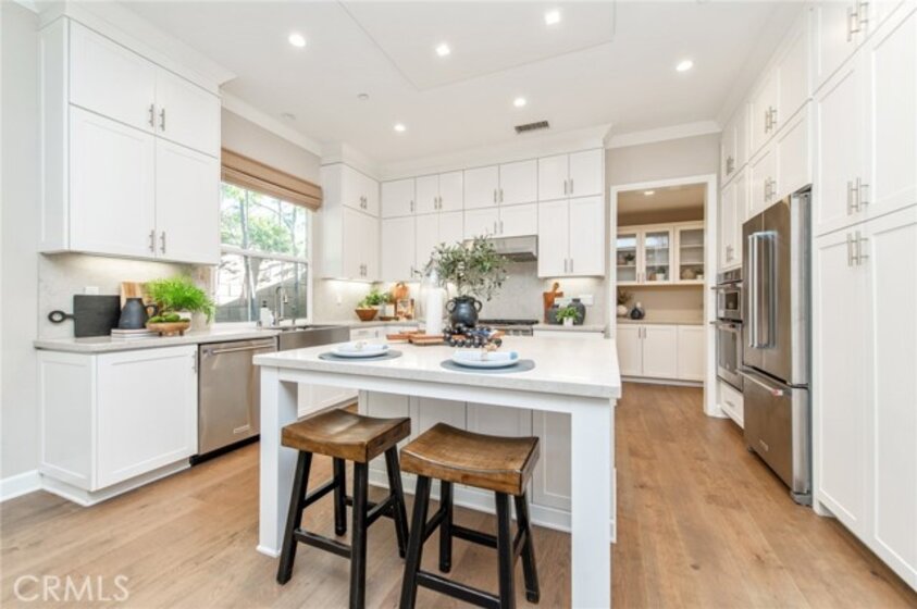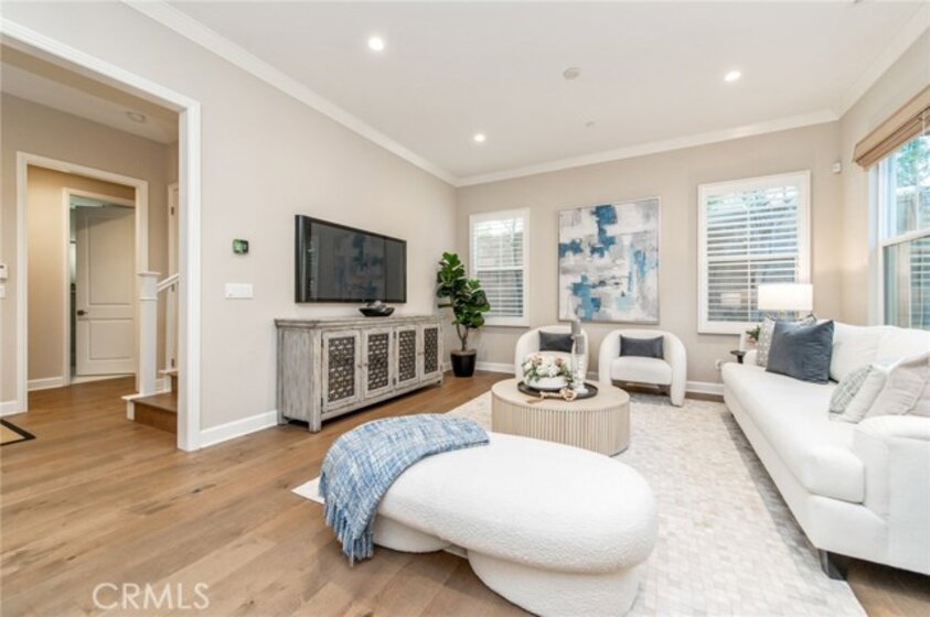 Located in the desirable Eastwood Village of Irvine, this well-maintained detached home features the popular Marin Residence Plan 2 by Irvine Pacific. The home offers 4 bedrooms and 3 bathrooms, including a full bedroom and bath on the first floor—perfect for guests, extended family, or a home office. Builder upgrades include hardwood flooring, floor-to-ceiling cabinetry, and custom wall panel accents. The open living area connects the living room, dining space, and kitchen, creating a comfortable layout for daily living. Sliding glass doors lead to a large private backyard professionally landscaped by a designer, offering beautiful outdoor space for relaxation and entertaining. An attached two-car garage provides direct access. The home is within walking distance to Eastwood Elementary School, parks, and Northwood Town Center for convenient shopping and dining. Community amenities include pools, walking trails, and recreation areas. With low HOA dues and property taxes, this is a great opportunity to own in one of Irvine’s most popular neighborhoods.