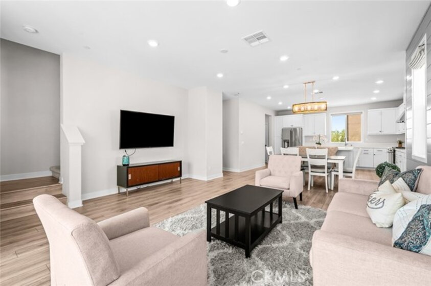 Located within the desirable Great Park community and close to the highly rated Portola High and Solia Park School (k-8th), this beautiful 4 bedrooms and 3.5 bathrooms corner unit townhome is highly upgraded and must be seen to be appreciated. Excellent natural lighting overflows the entire house with open concept Great Room, Dining Room and Kitchen. The first floor features a welcoming foyer with a spacious private bedroom and its own bathroom. The second floor showcases a beautiful kitchen with stainless steel GE Café Appliances, Quartz countertop and a large center island. The open Great Room is attached to the balcony with expansive greenbelt and neighborhood view. Upstairs features the Primary en-suite with Walk in Closet. The two secondary bedrooms are generously sized and are thoughtfully designed away from the Primary Suite for privacy. Enjoy the resort like recreational amenities in Great Park including beautiful parks, multiple pools/ sports courts, BBQ and patio areas, playgrounds, an ice rink, a water park, walking trails and much more. Conveniently located near Woodbury Town Center and a future shopping center within the Great Park slated to open in 2027. (Photos Coming Soon)