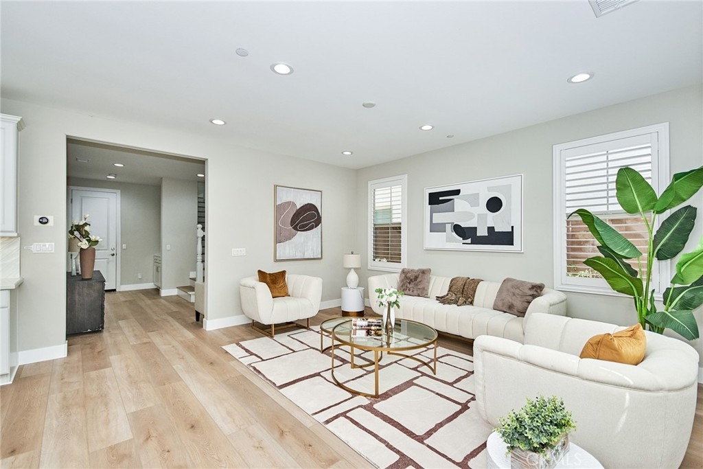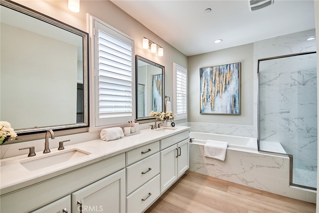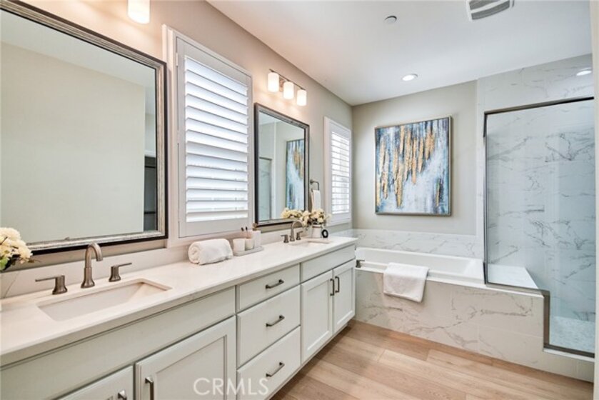 Welcome to this charming detached home in the Irvine Village of Portola Springs! The inviting foyer entry seamlessly connects to an open floor plan with an oversized great room for relaxation. one bedroom with full bath downstairs is ideal for guest. The kitchen with upgraded cabinetry and quartz counter top, built-in 6 burner cook-top, walking pantry, brand new SPC flooring throughout the house and brand new paint, custom plantation shutter for window cover, The private covered patio is perfect for family entertainment. The oversized master bedroom features a large walk-in closet. Find peace in the luxurious spa-like master bathroom with dual vanity, upgraded Quartz countertops, tile flooring, and tile shower walls. Each bedroom on the second floor has its own full bathroom with upgraded tile flooring and walk-in closet for utmost convenience. And a loft in the second floor. Enjoy resort style amenities including community pool, jacuzzi, basketball court, playground, and park within walking distance. Award-winning Irvine Unified School District. Convenient freeway access and close to Woodbury Town Center retail shopping and restaurants.