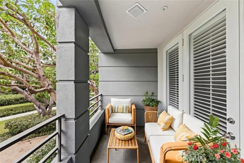 UPGRADES***UPGRADES**FIRST FLOOR**1 BED WITH ADDITIONAL OFFICE WITH CUSTOM CLOSET CABINETS SO CAN BE CONVERTED TO A 2 BED or REMAIN OFFICE*Experience luxury living in one of the safest places to live in Irvine! Welcome to 2243 Martin, Unit 107, located in the highly desirable Metropolitan community, just a short walk to John Wayne Airport. This stunning end-unit condo offers privacy with only one shared wall and an open layout designed for modern living. Inside, you’ll find upgraded quartz countertops in both the kitchen and bathroom, custom Elfa shelving in the den/office or turn into 2nd bedroom, elegant crown molding, and a designer bedroom chandelier. The spacious den features custom 10-ft closet doors with extra storage, while the home is enhanced with motorized LED lighting with remotes and plantation shutters throughout and NEST thermostat. The Garage is parking step away from stairs and elevator Relax on your private balcony overlooking the tranquil greenbelt or enjoy the resort-style amenities at The Metropolitan: a sparkling heated pool, spa, fitness center, elegant clubhouse, and lush landscaped grounds perfect for an evening stroll. The community also offers 24/7 gated security, underground parking, and HOA coverage of water, gas, and trash for peace of mind. Nestled in the heart of Irvine, you’ll be minutes from top-rated parks, recreation, world-class shopping, dining, and beaches. Don’t miss the chance to own this beautifully upgraded home in one of Irvine’s most sought-after communities!