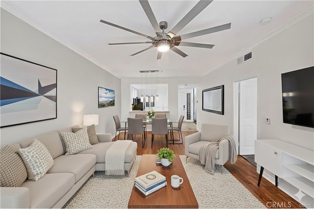 UPGRADES***UPGRADES**FIRST FLOOR**1 BED WITH ADDITIONAL OFFICE WITH CUSTOM CLOSET CABINETS SO CAN BE CONVERTED TO A 2 BED or REMAIN OFFICE*Experience luxury living in one of the safest places to live in Irvine! Welcome to 2243 Martin, Unit 107, located in the highly desirable Metropolitan community, just a short walk to John Wayne Airport. This stunning end-unit condo offers privacy with only one shared wall and an open layout designed for modern living. Inside, you’ll find upgraded quartz countertops in both the kitchen and bathroom, Mohawk carpet, refinished balcony floor, & extra storage in the unit to custom Elfa shelving in the den/office or turn into 2nd bedroom, elegant crown molding, and a designer bedroom chandelier. The spacious den features custom 10-ft closet doors with extra storage, while the home is enhanced with motorized LED lighting with remotes and plantation shutters throughout and NEST thermostat. The Garage is parking step away from stairs and elevator Relax on your private balcony overlooking the tranquil greenbelt or enjoy the resort-style amenities at The Metropolitan: a sparkling heated pool, spa, fitness center, elegant clubhouse, and lush landscaped grounds perfect for an evening stroll. The community also offers 24/7 gated security, underground parking, and HOA coverage of water, gas, and trash for peace of mind. Nestled in the heart of Irvine, you’ll be minutes from top-rated parks, recreation, world-class shopping, dining, and beaches. Don’t miss the chance to own this beautifully upgraded home in one of Irvine’s most sought-after communities!