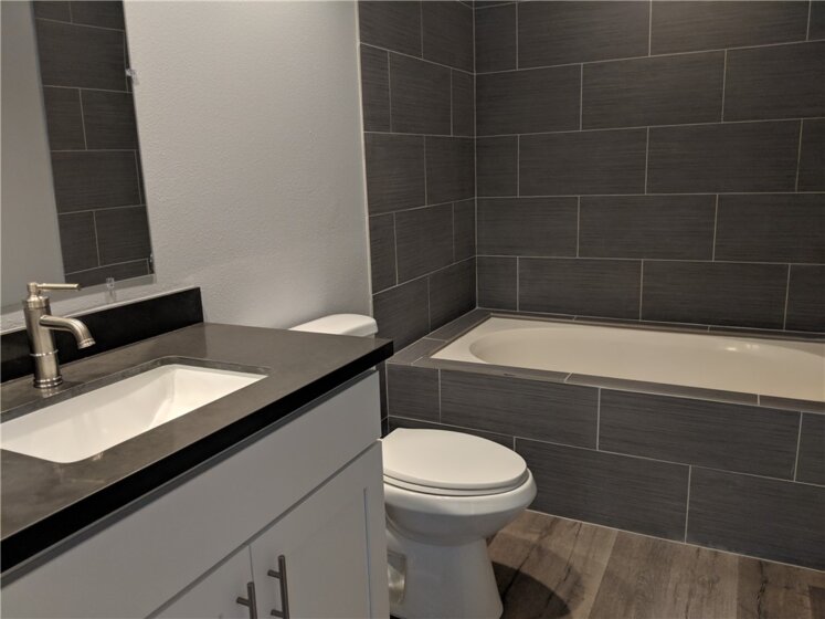 Roomy, bright, and comfortable TWO BEDROOM PLUS DEN in one of the nicest communities in Orange County. Newer wood style vinyl plank flooring with newer carpet in the bedrooms. Remodeled kitchen with stylish cabinets, quartz counter tops, modern finishes. Minutes to freeways, shopping, restaurants, and downtown offices. 24 hour guard gate, 2 full baths, 2 assigned parking spaces in underground structure. Access to community pool, spa, club house, and well equipped fitness center. Balcony faces lush green, tropical landscaping. HOA dues include water, trash, gas, sewer.