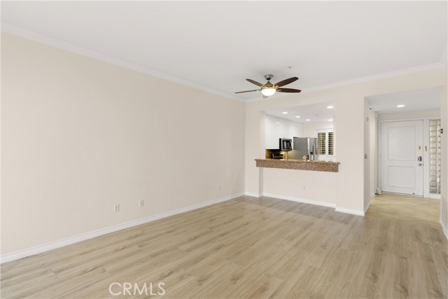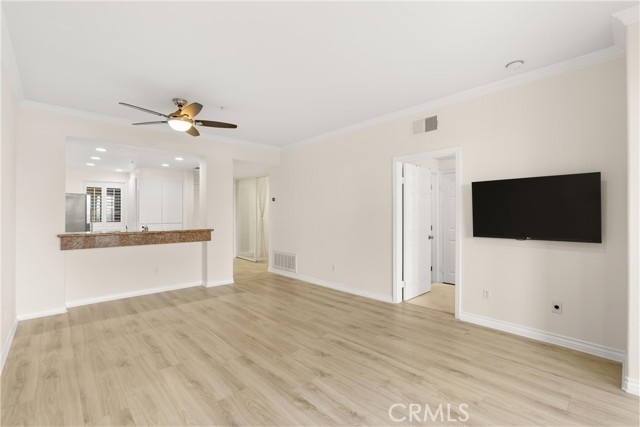 Resort style living at The Metropolitan. LOWEST PRICED UPGRADED UNIT IN THE COMPLEX! Why spend $75-100K in remodel when this unit is turnkey! Very large one bedroom plus den that can be used as an office or second bedroom. Very good location. Only 1 common wall. Beautiful new flooring in living room and den. Office/den/second bedroom features sliding glass door and drapery for privacy. Kitchen features newer granite countertops, stainless steel electric oven and range, very large stainless refrigerator, dishwasher, front loading washer, and dryer all included in sale. 9-foot ceilings throughout. Highly upgraded Bathroom features dual vanity with stone countertops and cabinets with lots of storage, private toilet & walk in stone lined shower adjacent to large stone cased soaking bathtub. Bedroom has spacious walk-in closet and newer carpeting. Patio is very large with lush tropical landscape and greenbelt views. Close to South Coast Plaza & Fashion Island/ Newport Beach, all the best Orange County has to offer is at your doorstep. Within a few minutes of JW Airport & 3 major freeways this ideal location is for the most cosmopolitan of residents. Features pool, spa, gym & guarded gate. Water, hot water trash and gas are all included in HOA dues. Great opportunity here!