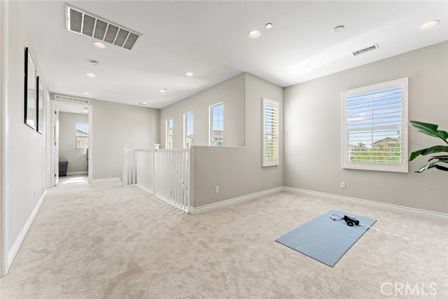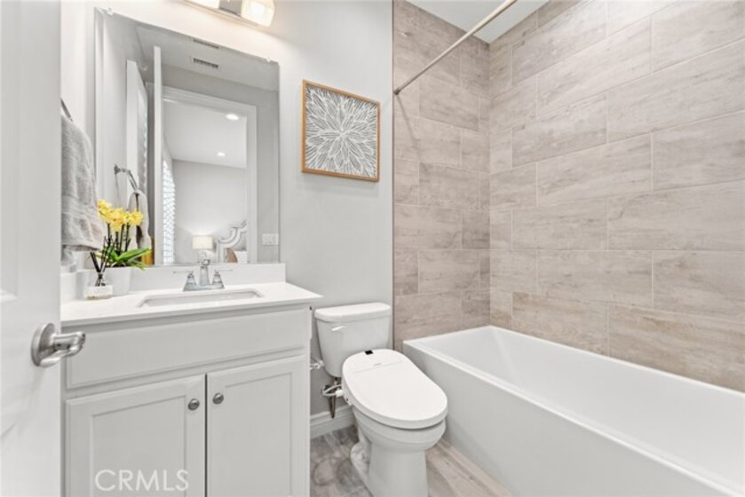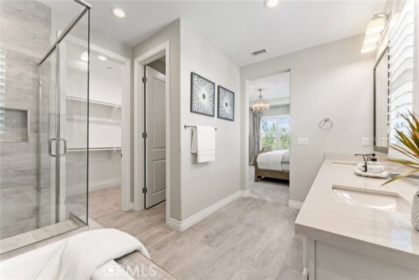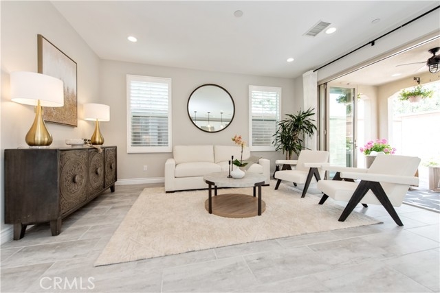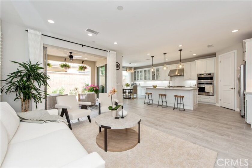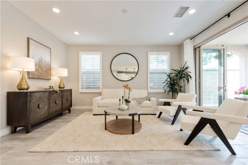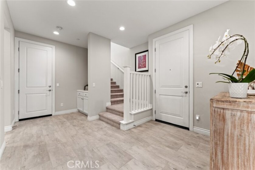 Rare opportunity to own the largest floor plan in the Juniper community of Portola Springs! This upgraded 4-bedroom, 4-bathroom end-unit detached condo offers a highly functional two-story layout, featuring a spacious open-concept living area, floor-to-ceiling windows, and direct garage access. The corner location provides exceptional privacy, abundant natural light, and unobstructed park views—right across from the greenbelt, playground, and community pool. A rarely available and highly desirable floor plan, this home includes one bedroom and full bathroom on the first floor—perfect for guests, multi-generational living, or a home office. Upstairs, you'll find three en-suite bedrooms and a bright loft ideal for work or play. All upgrades were completed by the builder, including sleek tile flooring throughout the first level, custom kitchen cabinets and island, upgraded bathroom finishes, and recessed lighting with chandelier pre-wiring in all bedrooms. Additional highlights include 8 public parking spaces conveniently located in front of the home, adding ease for visitors and residents alike. Located within the award-winning Irvine Unified School District, this home offers the perfect blend of space, comfort, and location in one of Irvine’s most sought-after neighborhoods.
